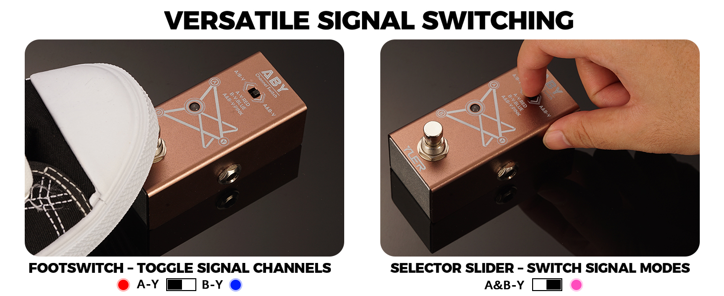 مجموعة واحدة كاملة المزايا لاختيار الخط، والتي يمكنها تبديل اختيار إشارة واحدة إلى اثنتين مختلفتين، مناسبة لاختيار خط الأدوات ومكبرات الصوت والخزائن (يتطلب كابل مكبر الصوت)، ودواسات مجموعة التأثيرات.