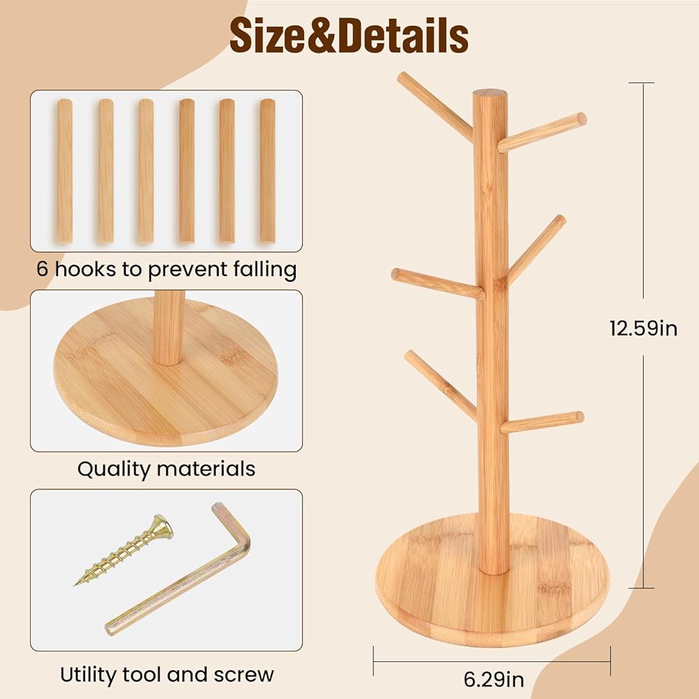 "Features: Material: Bamboo Size: 6.29x6.29x12.59in Package includes: 1 screw 1 set screw 1 round base 1 pillar and 6 branch display stands What else can we know about Bamboo Pretzel Stand Holder? 1. The unique tree shape can meet your decoration needs, in addition, it can also be used for display and hanging, and the dual-use function is an ideal choice 2. Ideal not only for your house and tabletop, but also for kitchen decoration. It can also be used for party gatherings and beer festivals as well as various festival displays. Add to the festive atmosphere"