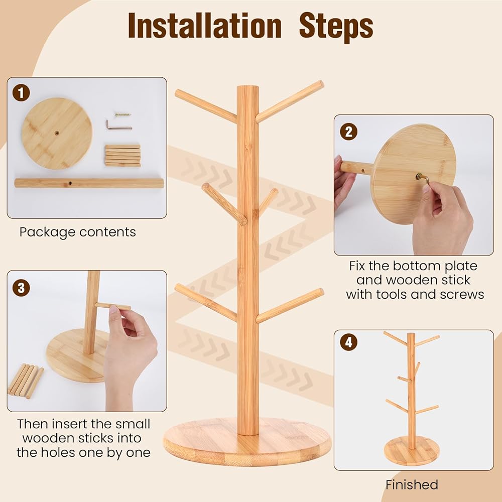 • Installation: pretzel holder1 mounting screw, 1 fixing handle, 1 round pillar and 6 branch posts. Simply fix the screw to the base and insert the pillar into the hole to complete the installation, which is simple and convenient