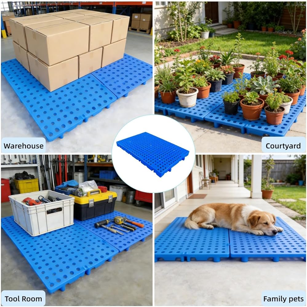 Modular Size for Flexible Storage Layouts:Each pallet measures 11.8 x 23.6 x 1.18 inches, allowing multiple pieces to be arranged freely based on available space. Use them individually or combine several to create a customized storage platform.