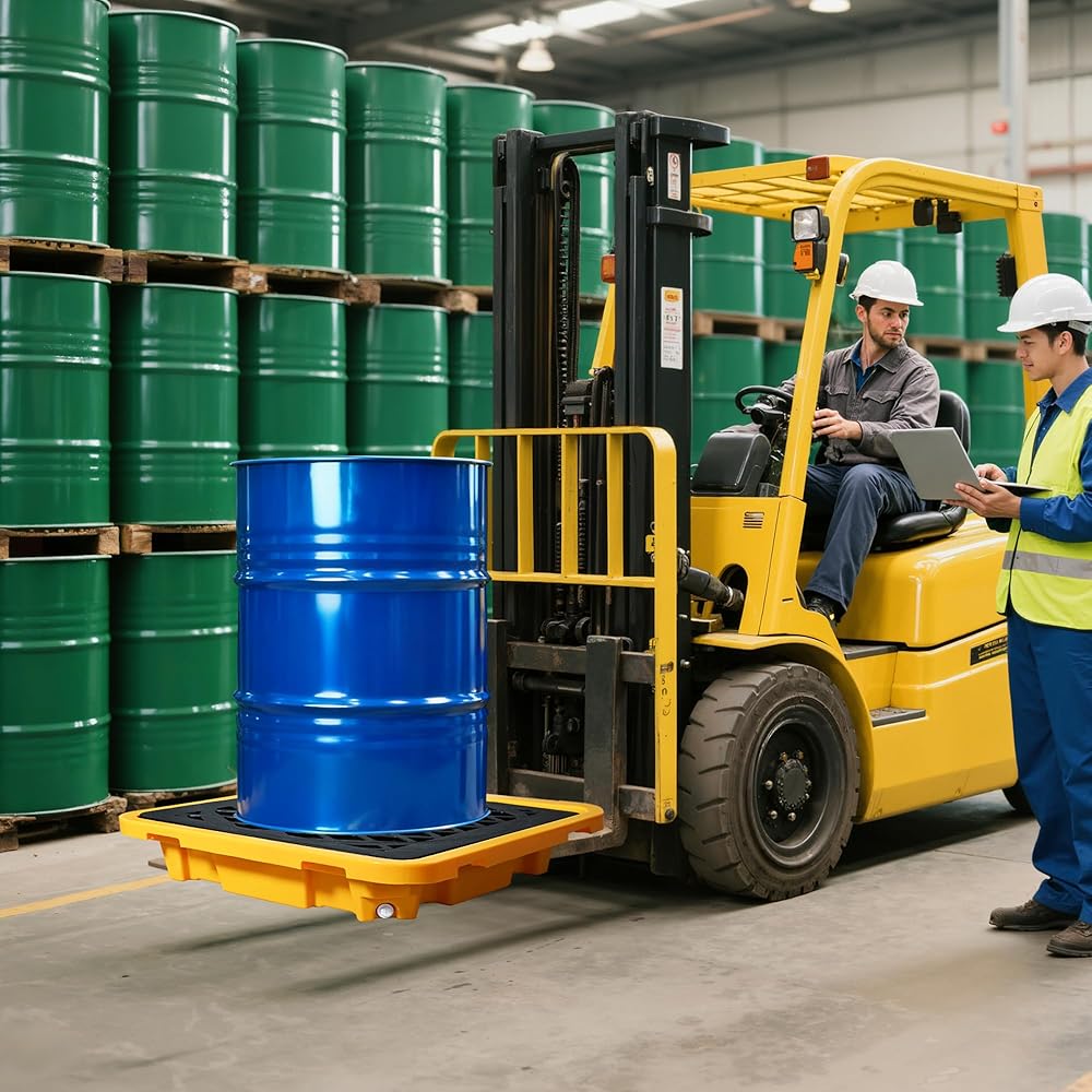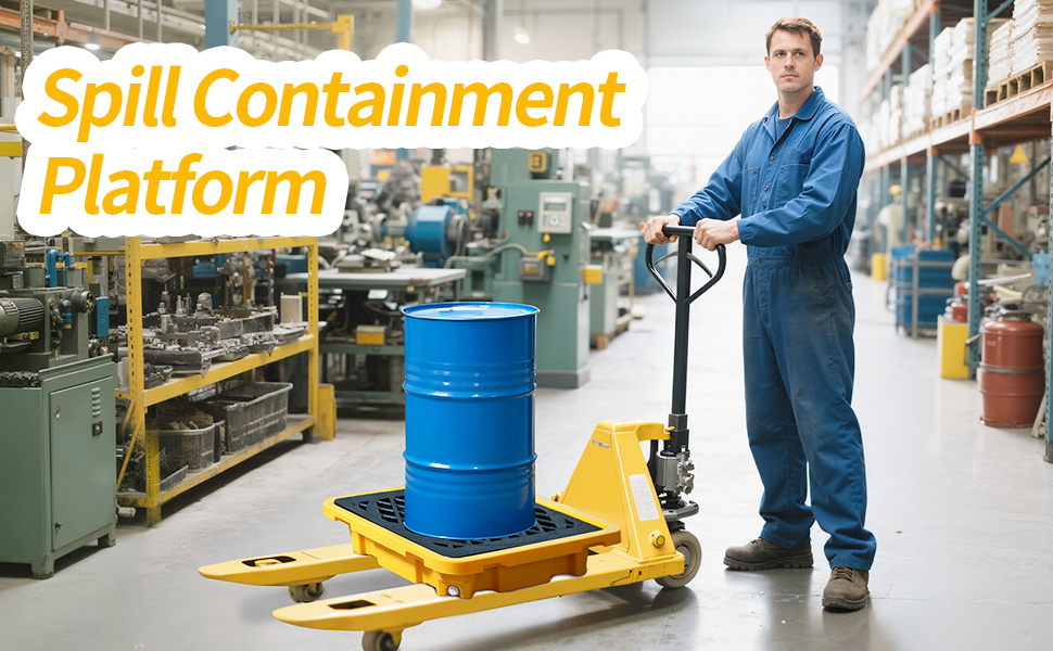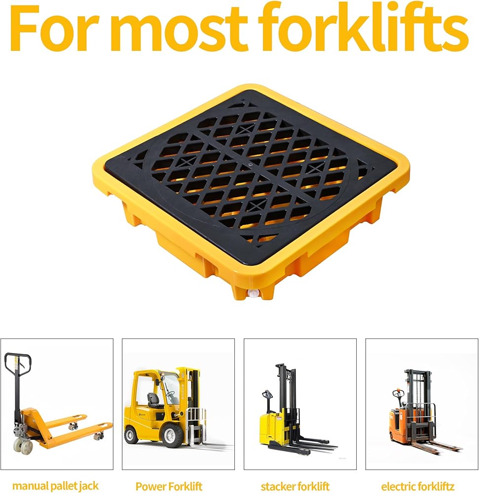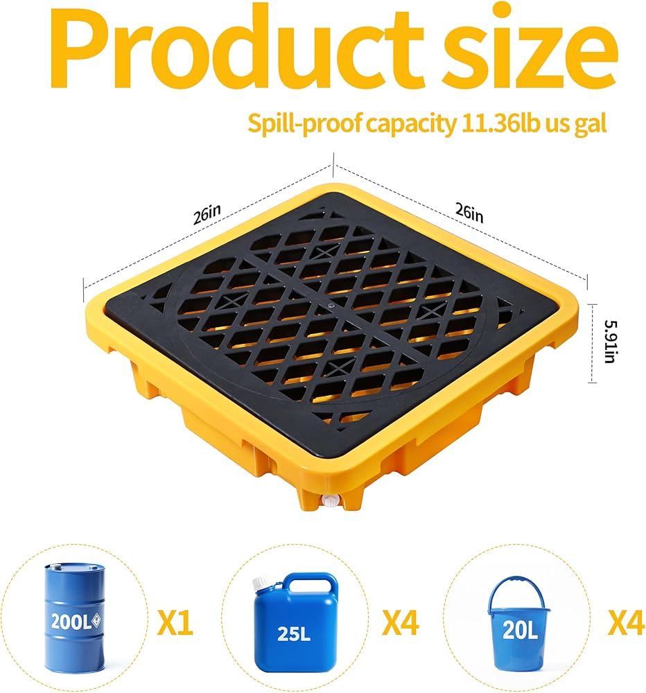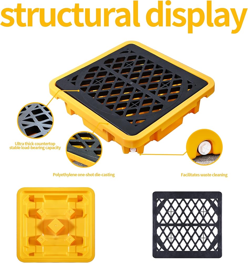 سعة الانسكابات الكبيرة: منصة احتواء الانسكابات المكونة من قطعة واحدة (26.4 بوصة × 26.4 بوصة × 6 بوصة) توفر سعة انسكاب تبلغ 43 لترًا، وتحمل دلاء حديدية سعة 200 لترًا؛ يلبي احتياجات ""احتواء الانسكابات"" اليومية والصناعية بفعالية.