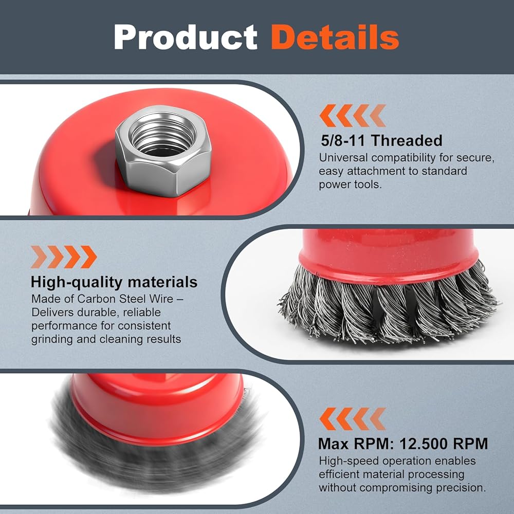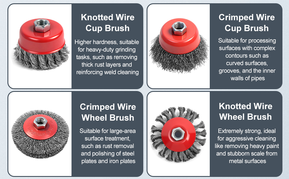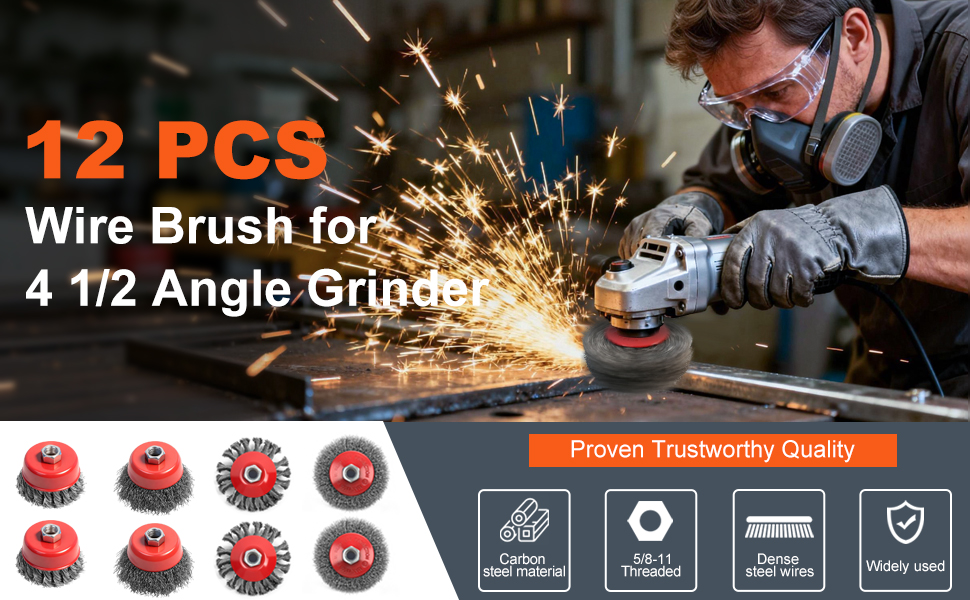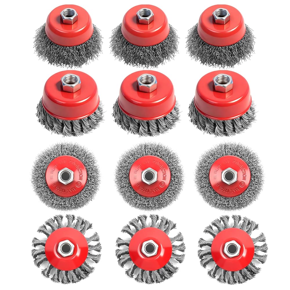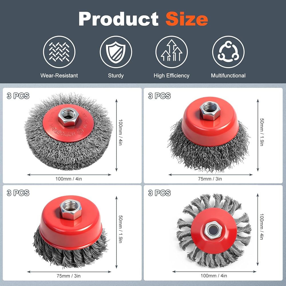 • 【مجموعة فرش سلكية لطاحونة الزوايا مكونة من 12 قطعة】عجلة سلكية معقودة 3x عدوانية 4 بوصة لطاحونة الزوايا، عجلة سلكية مجعدة خشنة 3x 4 بوصة، بالإضافة إلى فرش أكواب مجعدة 3x 3 بوصة و3x 3 بوصة. مجموعة مصممة احترافية، مثالية لإزالة الصدأ والطلاء واللحام شديد التحمل على الأسطح المعدنية، وتغطي جميع متطلبات التشطيب المعدني القوي ومتطلبات إعداد السطح.