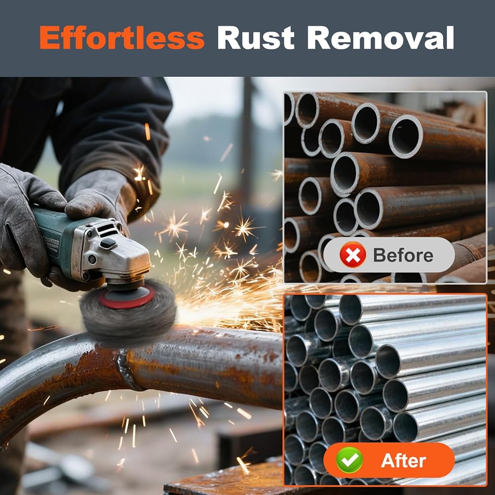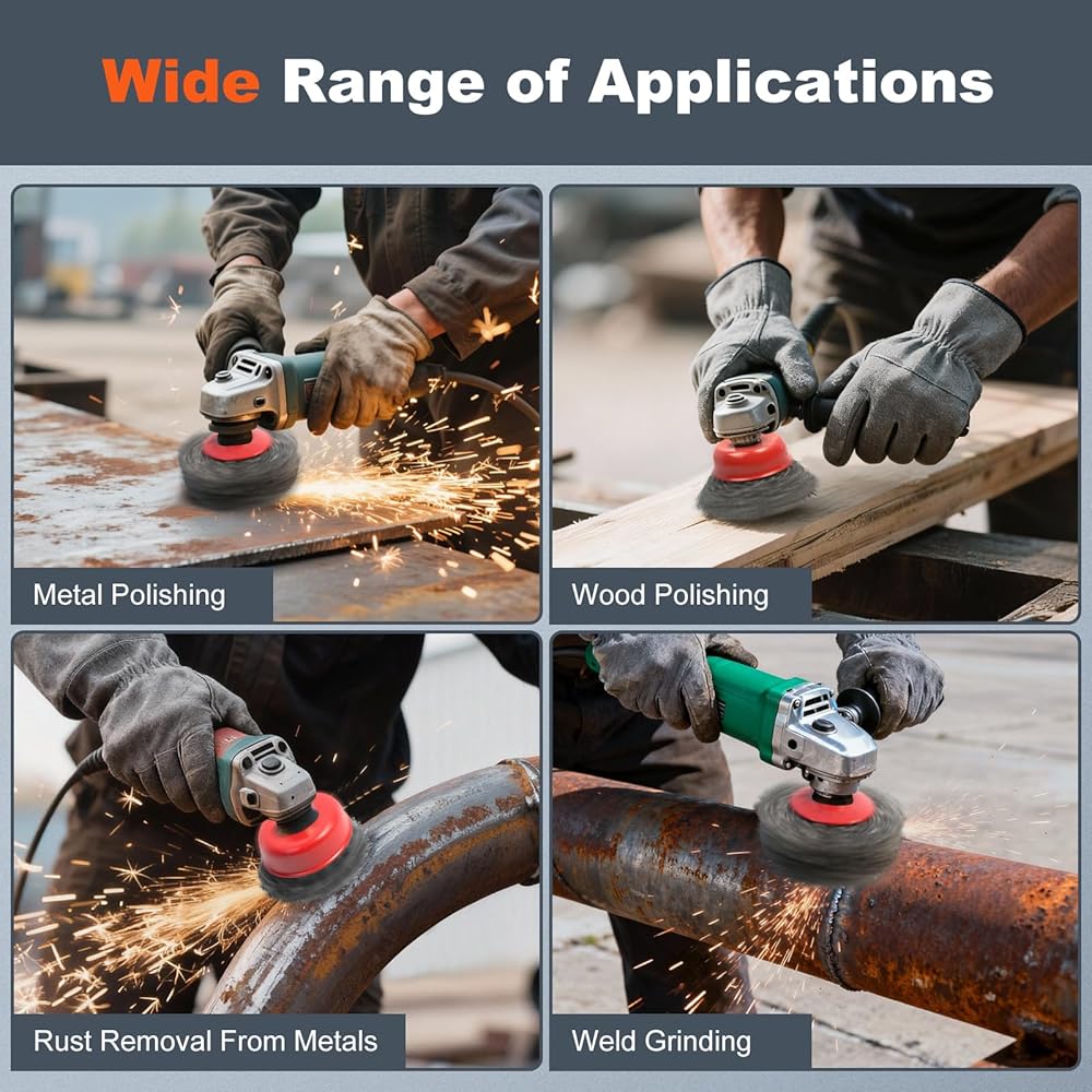 • 【حل تشغيل المعادن الكل في واحد】تتعامل مجموعة فرشاة طاحونة الزوايا الاحترافية هذه مع تنظيف السطح الخفيف لإزالة التآكل الثقيل، مثالية لترميم السيارات، وتصنيع المعادن، وإعداد اللحام والتشطيب المسبق للطلاء/المسحوق. 4 أحجام متنوعة من العجلات السلكية وفرشاة الأكواب تعمل على تكييف المعدن/الخشب الخفيف/الثقيل، وتزيل الصدأ والطلاء والتآكل والنتوءات والمقاييس بسهولة، وتناسب المناطق الكبيرة والمساحات الضيقة دون عناء.