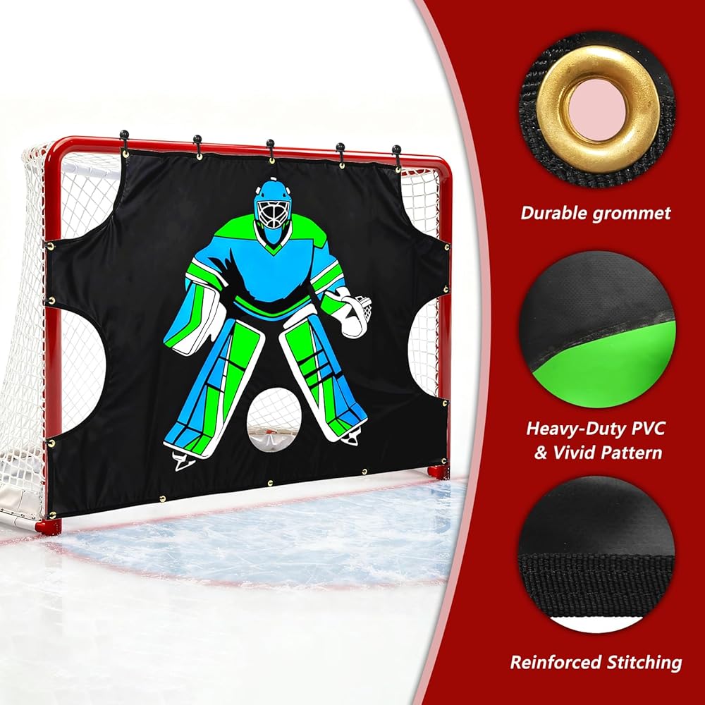 هدف إطلاق النار على هوكي الجليد: 72 × 48 بوصة، مساعد تدريب مقاوم للماء على التثبيت السريع، تحسين الدقة للاعبي المدربين البالغين في الأماكن المغلقة والمفتوحة - قطعة واحدة