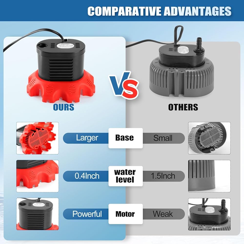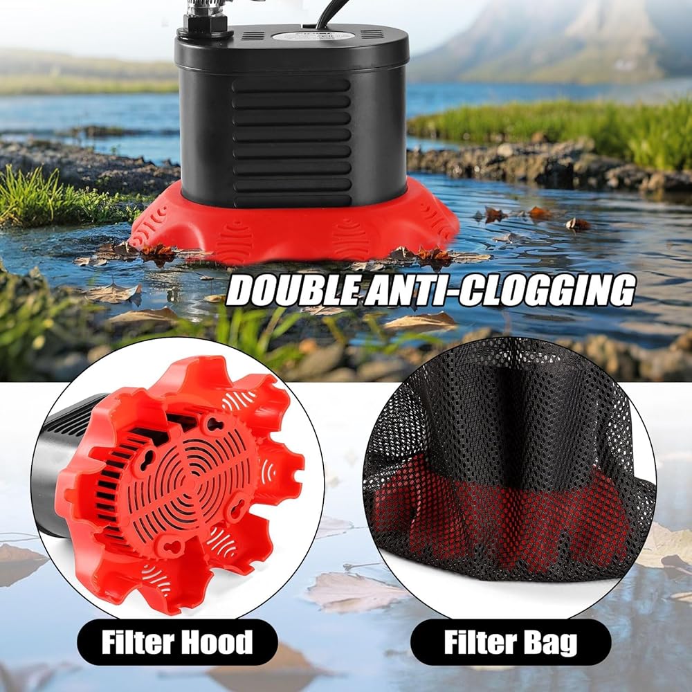 • مضخة مياه صغيرة: مضخة تصريف حوض السباحة مصنوعة من مادة متينة مقاومة للماء (IPX8)، مقاومة للصدأ والصدمات، فتحات الفلتر السفلية تمنع الانسداد، ويمكن للحماية من الحرارة الزائدة أن تغلق الجهاز تلقائيًا عندما تكون درجة حرارة المحرك أعلى من 55 درجة.