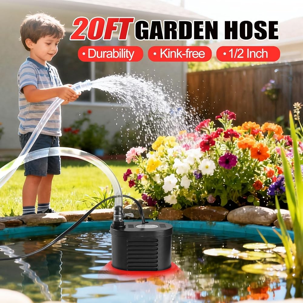 • أنبوب تصريف بطول 20 قدمًا: تأتي مضخة المياه لتصريف حوض السباحة مع خرطوم مرن بطول 20 قدمًا مقاس 1/2 بوصة، وهو متين وليس من السهل ربطه. يمكنها تحسين كفاءة ضخ مضخة إزالة المياه وتقصير وقت الانتظار.