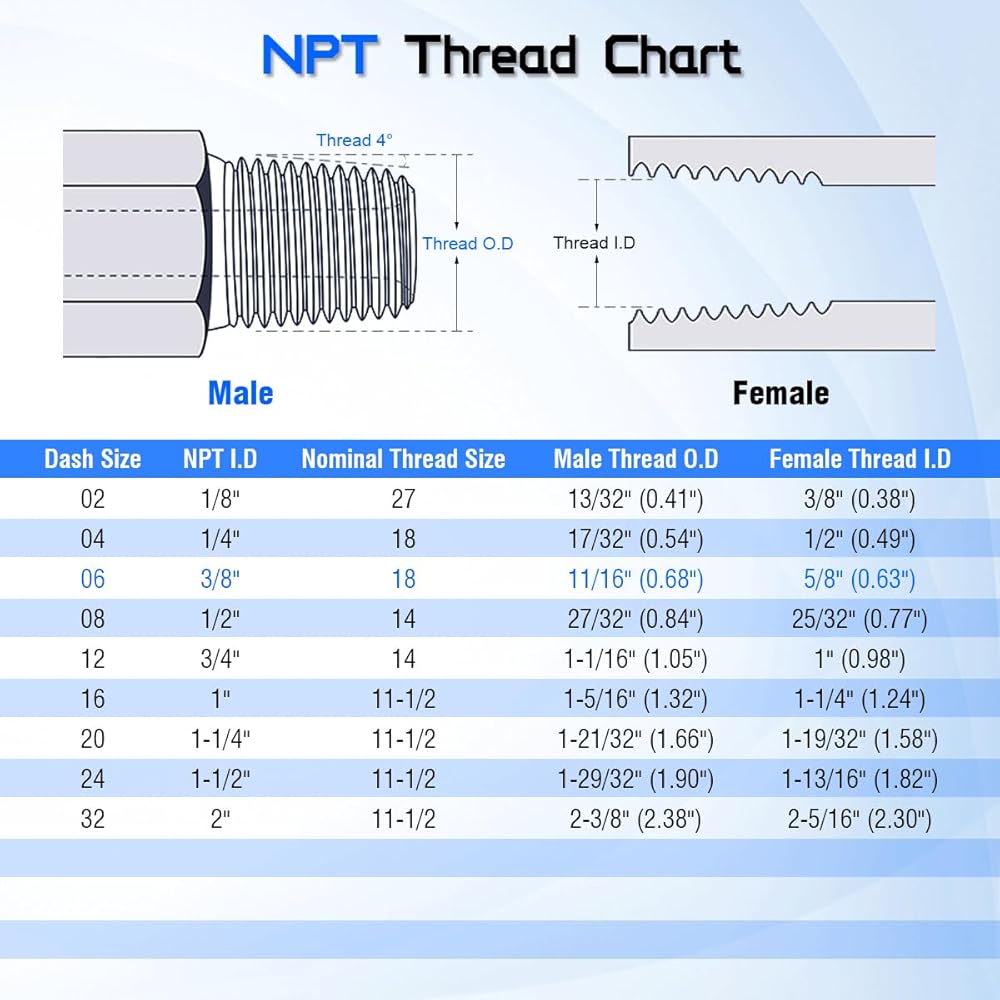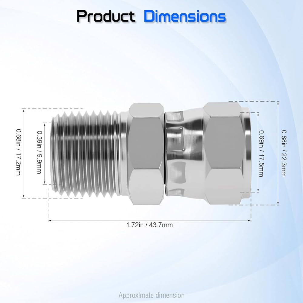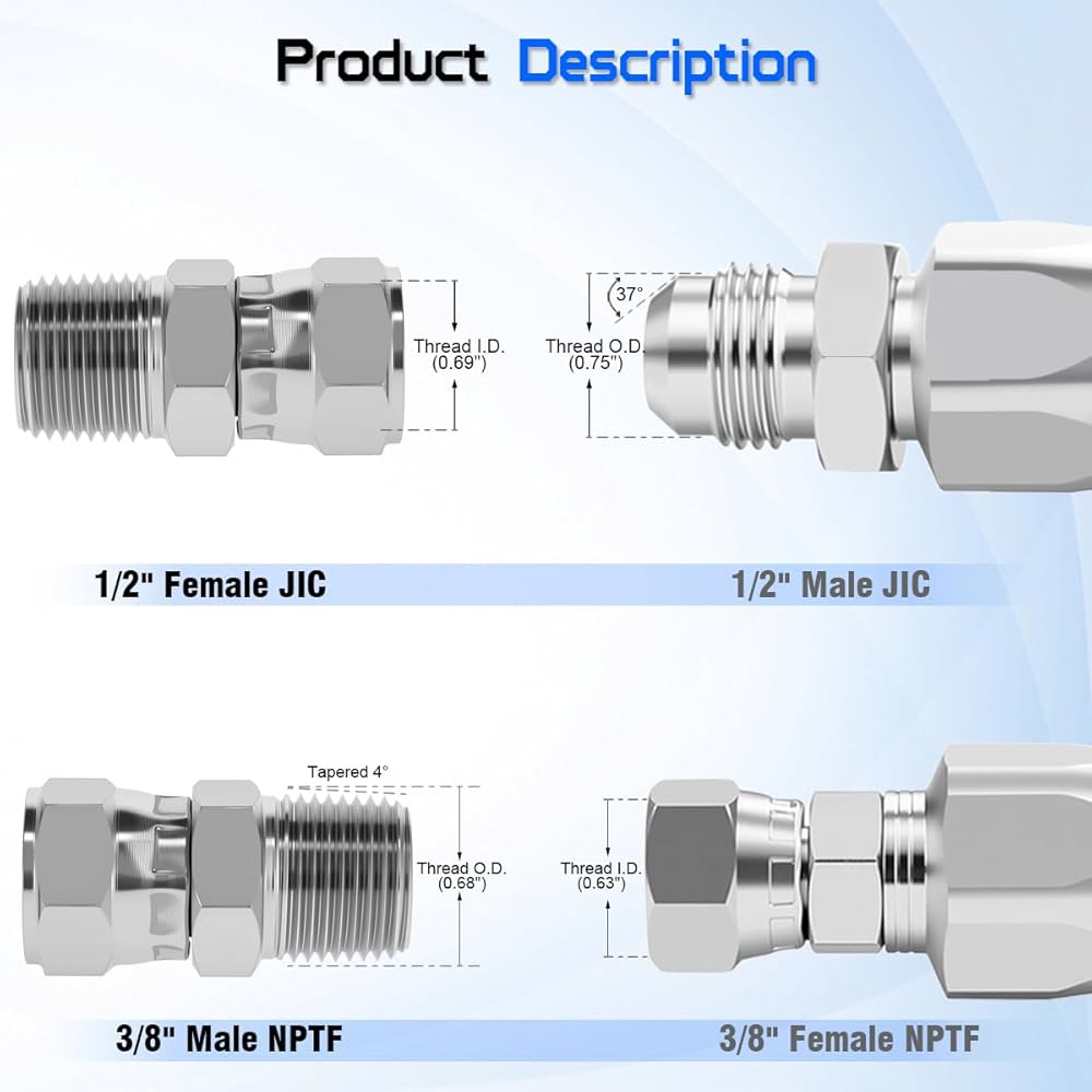 【Superb Compatibility】This is a straight-thru swivel adapter with 3/8" Male NPTF (National Pipe Taper Fuel) Thread on one end and a 1/2" Female JIC 37° Flare Swivel on the other. This exact configuration is designed for converting pipe thread to flare connections in high-pressure systems with zero room for error.