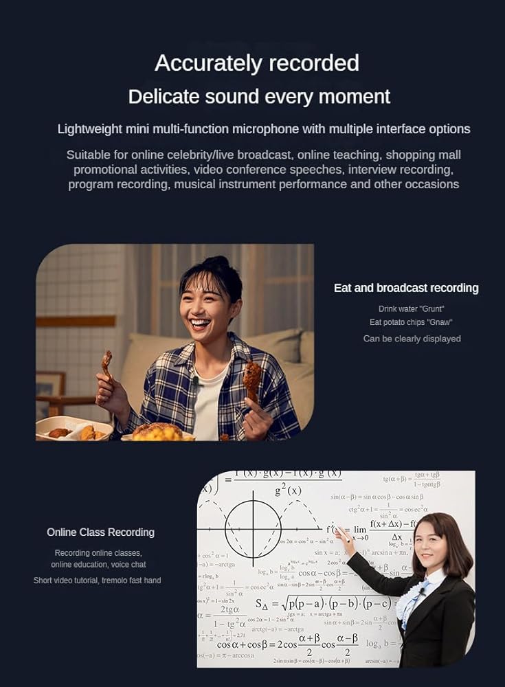 Includes a professional-grade tinned copper core cable with multi-layer shielding (cotton, PVC, aluminum foil) for stable signal transmission and protection against interference. It's the versatile tool for podcasting, live streaming, online teaching, interviews, vlogging, and music performance.
