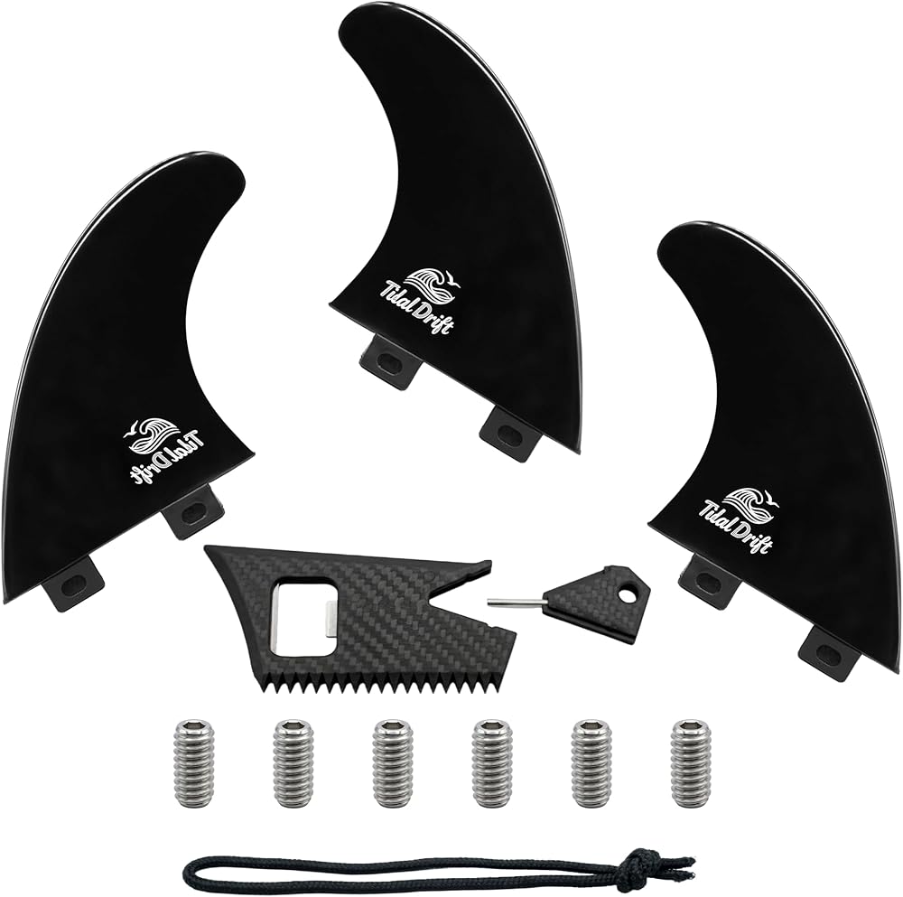 زعانف لوح ركوب الأمواج G5، مجموعة أدوات دفع من النايلون المقوى بالألياف الزجاجية بنسبة 35% متوافقة مع قواعد FCS، مصبوبة بالضغط العالي من أجل المرونة الصلبة و3 زعانف مع 4 في 1 متعددة الأدوات و6 براغي احتياطية - أسود