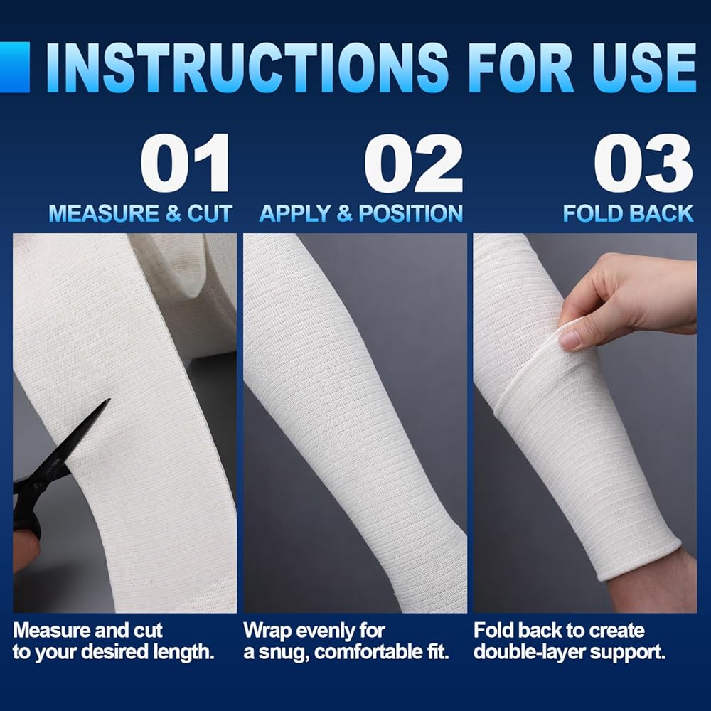 لفة متواصلة بطول 11 ياردة لتطبيق متعدد الاستخدامات - تحتوي كل لفة على 11 ياردة كاملة من الضمادات الأنبوبية المرنة، مما يسمح بالقياس الدقيق والقطع بناءً على التغطية المطلوبة. يوفر تنسيق اللفة المستمرة المرونة لتطبيقات متعددة من لفة واحدة ويدعم الاستخدام الفعال للمواد.