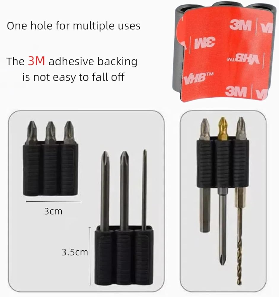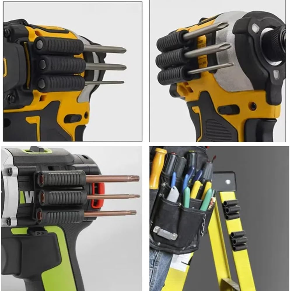 • مصنوع من السيليكون المرن المقاوم للكسر، يتم ربط هذا الحامل بشكل آمن بمثقاب التصادم الخاص بك من خلال لاصق قوي 3M - مما يخلق رابطة ثابتة ومستقرة تتحرك معك. يقوم كل حامل بتخزين 3 إلى 6 لقم ثقب بحجم ربع حجم بشكل ملائم على جسم المثقاب، مما يضعها دائمًا في متناول اليد ويعزز الكفاءة في المهمة.