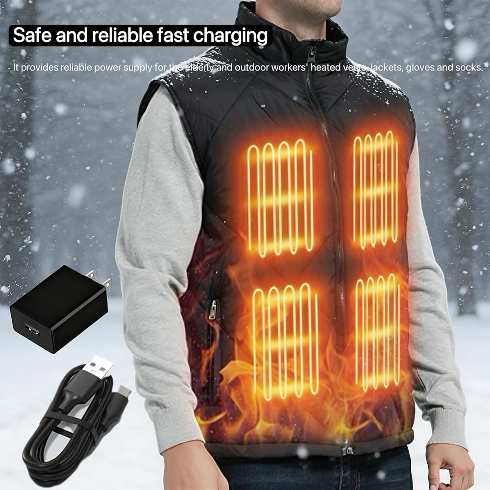Quick Charging: Efficiently replenishes battery power to keep your heated vest functioning at optimal levels