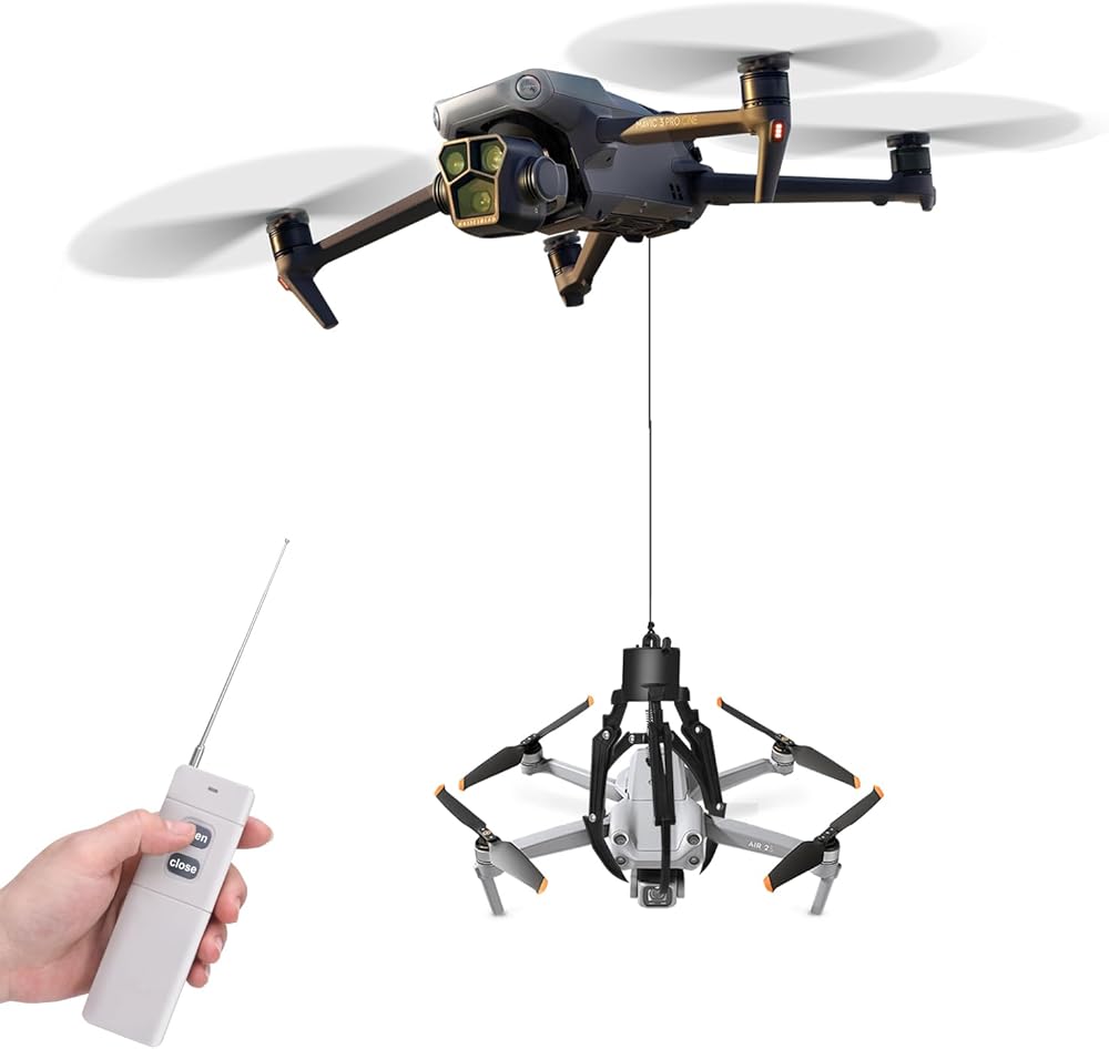 【ابتكار مزدوج الوظائف】** يجمع بين الإمساك بالمخلب الميكانيكي ونظام الإسقاط الجوي الدقيق في مجموعة واحدة، مما يتيح عمليات الإنقاذ/الصيد/مهام التسليم بسعة حمولة 3 أرطال.