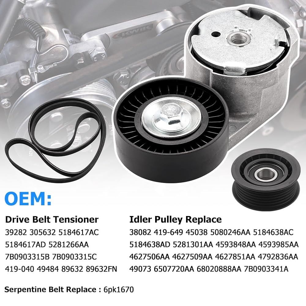 طقم شداد حزام القيادة لـ Ram 1500 لـ Chry sler 300 3.6L V6 - استبدال مباشر مناسب OE 39282 38082 6PK1960 مع حزام سيربنتين وبكرة تباطؤ، متوافق مع شاحن تشالنجر، 3 قطع