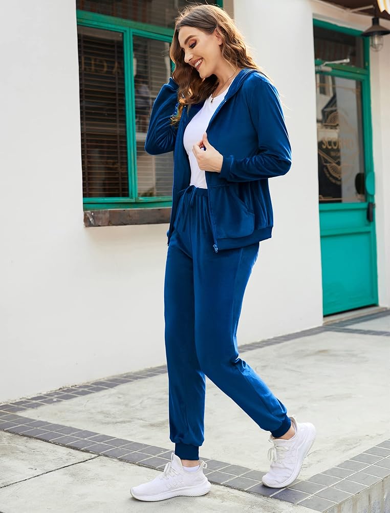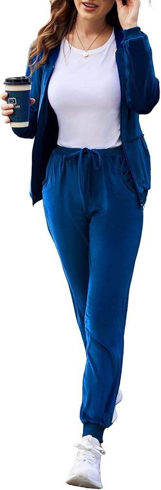 بدلة رياضية نسائية من القطيفة من ADOME مكونة من قطعتين سويت شيرت وبنطلون رياضي بسحاب كامل مع جيوب