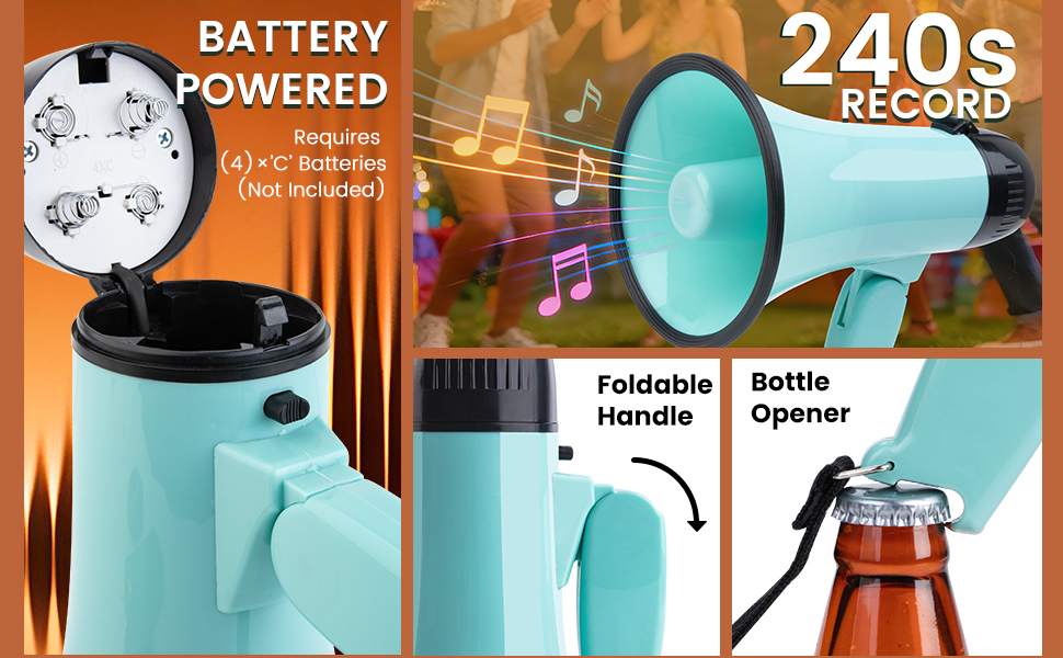تصميم متعدد الوظائف: هذا مكبر الصوت مجهز بفتاحة زجاجات ويحتوي على وظيفة تسجيل وتشغيل مدمجة لمدة 240 ثانية، مما يسمح لك بتشغيل صوتك بشكل متكرر عند الحاجة لضمان نقل المعلومات بشكل متكرر.