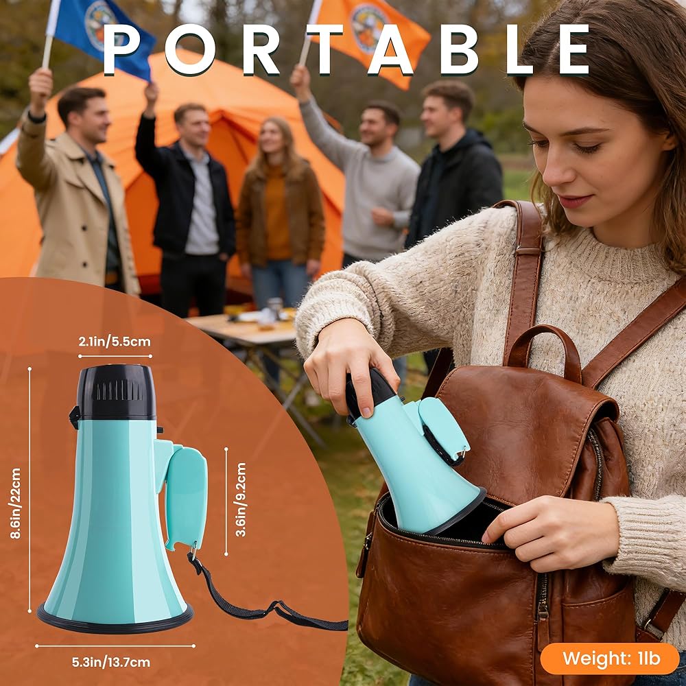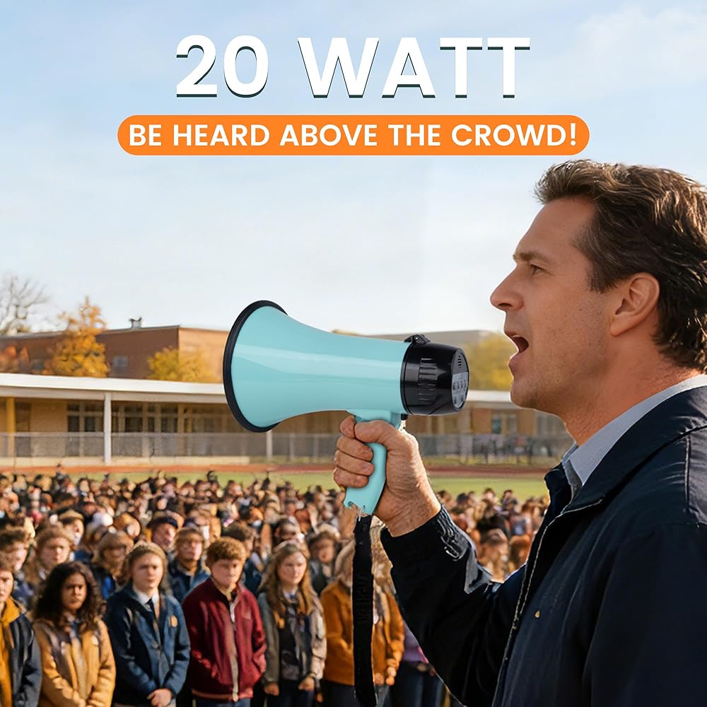 بصوت عالٍ وواضح: مع مكبر الصوت هذا بقدرة 20 واط، يمكنك تضخيم الصوت بوضوح وإسقاط صوتك على مسافة تصل إلى 300 قدم؛ كما أنه يحتوي على منبه مدمج، مع نطاق تغطية يصل إلى 650 قدمًا