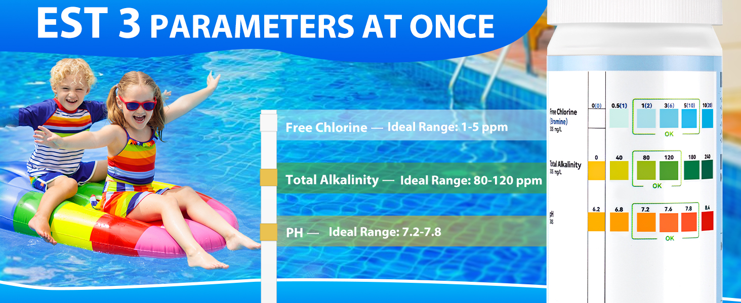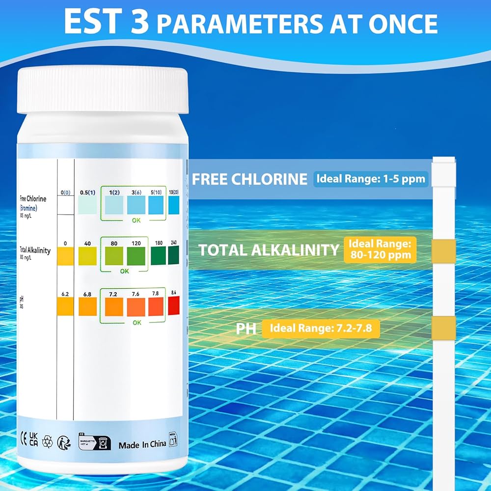 【حافظ على مجموعة آمنة لحمام السباحة】يمكن لمجموعة اختبار مياه حمام السباحة هذه التحقق من 3 معايير مهمة: درجة الحموضة، القلوية الكاملة، الكلور الحر. مع شريط واحد فقط من مجموعة اختبار مياه حمام السباحة، يمكنك فهم الجوانب الرئيسية لجودة مياه حمام السباحة الخاص بك بشكل كامل