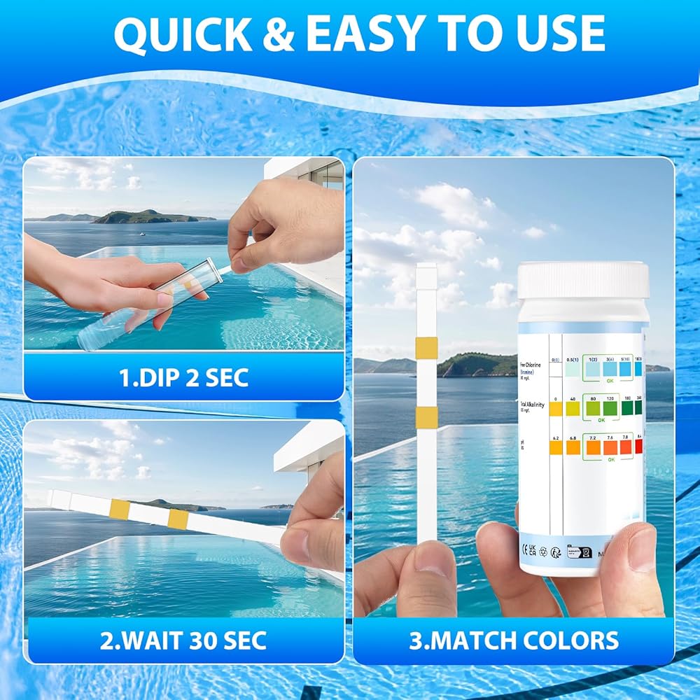 【من أجل صحة عائلتك】تؤثر جودة مياه حمام السباحة بشكل مباشر على صحتنا وقد تسبب عدم الراحة، لذلك من المهم جدًا اختبار جودة مياه حمام السباحة، ويوصى باختبارها مرتين في الأسبوع على الأقل للحفاظ على حمام السباحة الخاص بك نظيفًا وآمنًا.