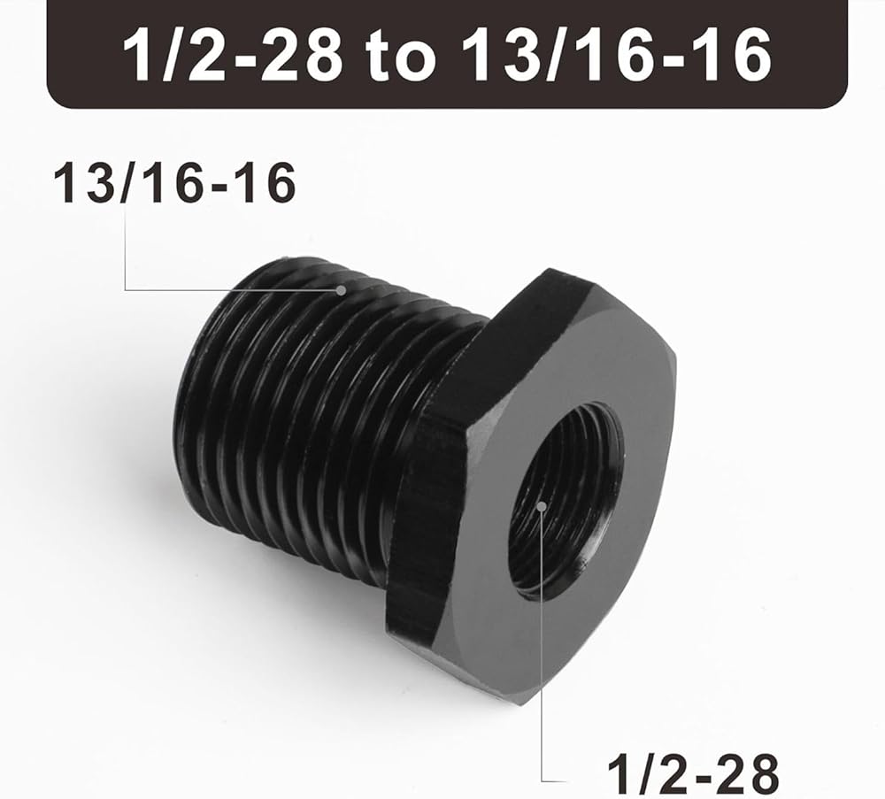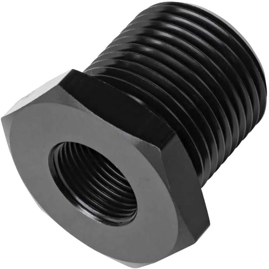 1/2-28 "NPT ذكر إلى 13/16-16" NPT أنثى المخفض جلبة المناسب محول عرافة الألومنيوم الأسود، 1 قطعة