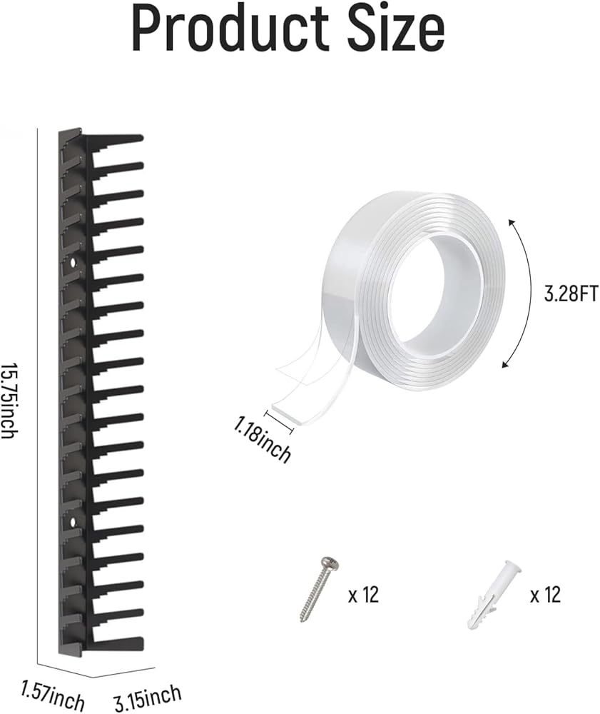 The Eikovia set includes 4 black metal dvd shelves and mounting hardware. Achieve the ultimate organization for your game organizers and storage needs. Order now and experience the perfect synergy of form and function with our premium dvd storage shelf and video game holder system.