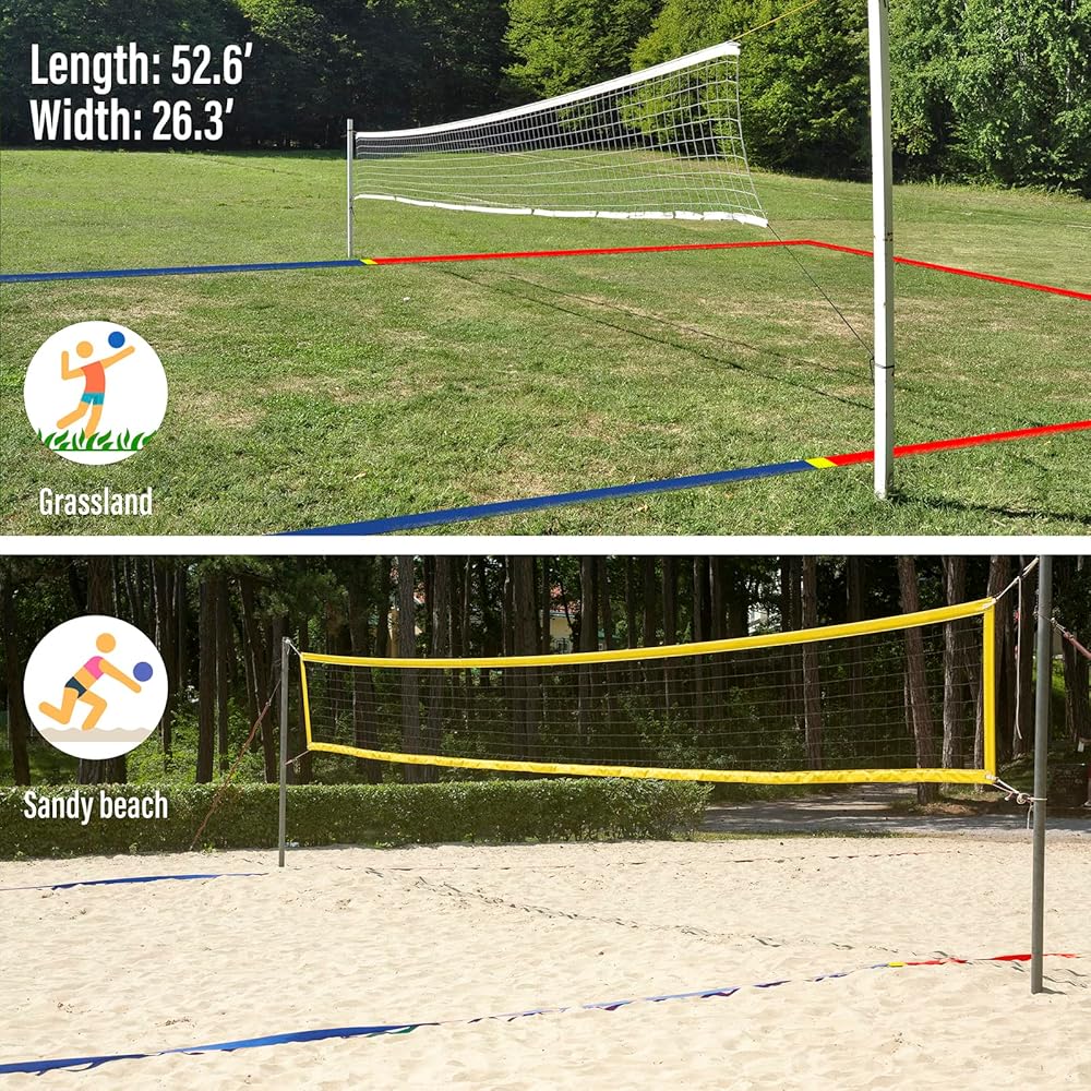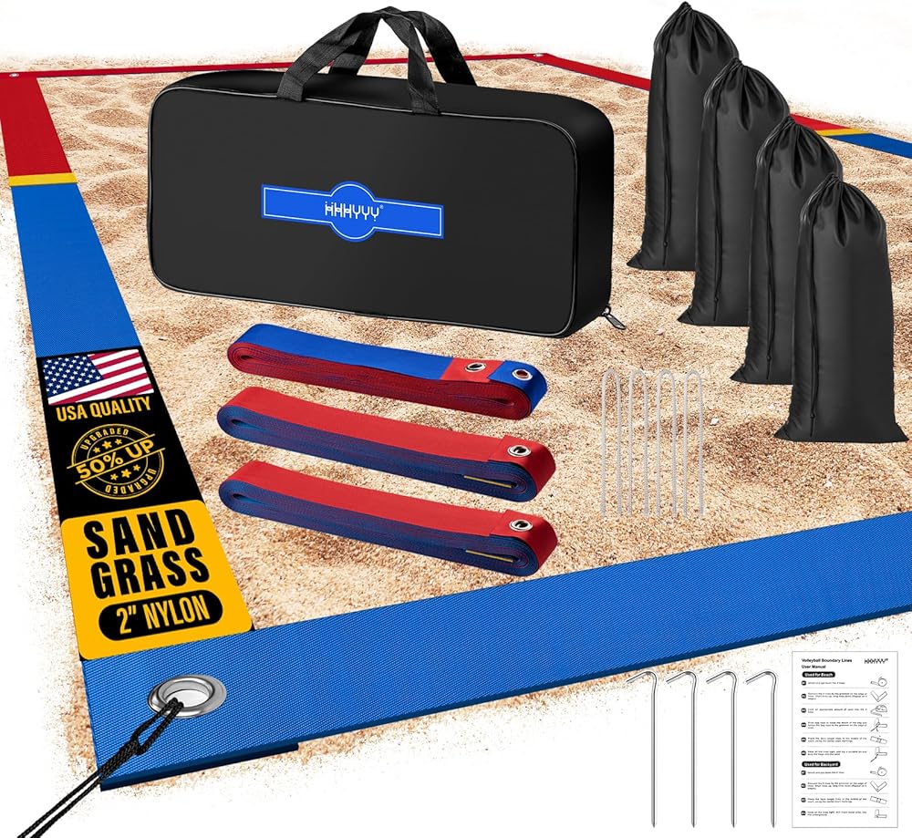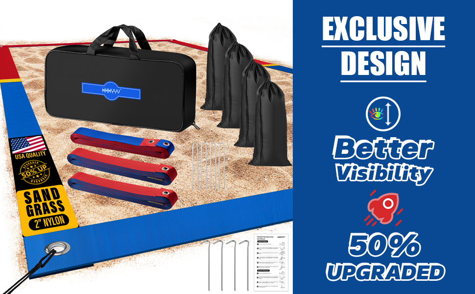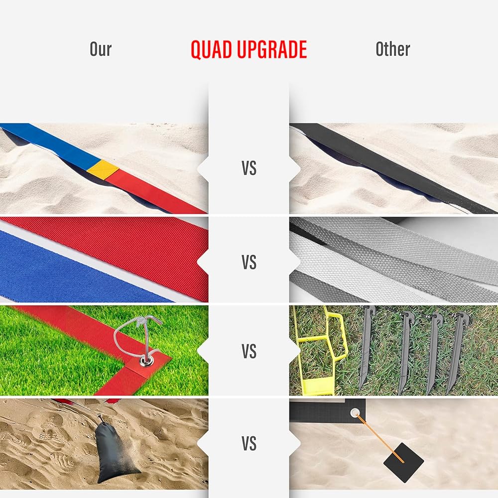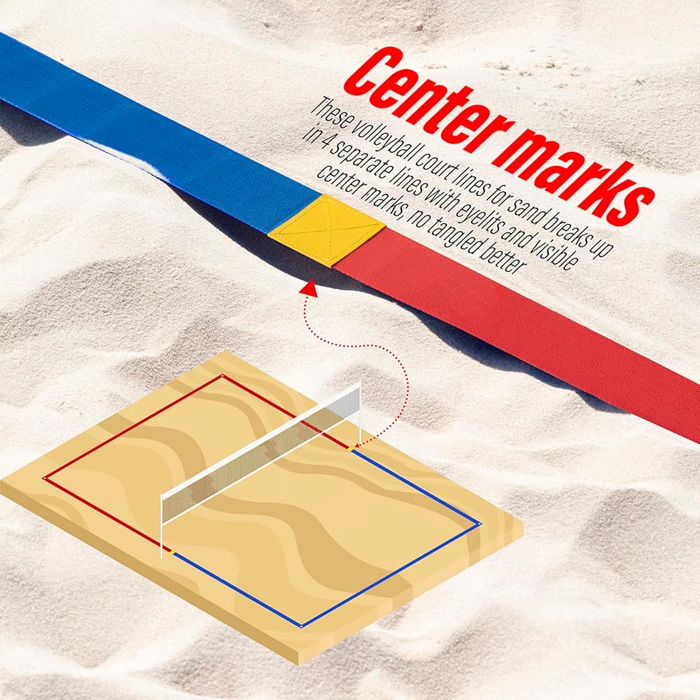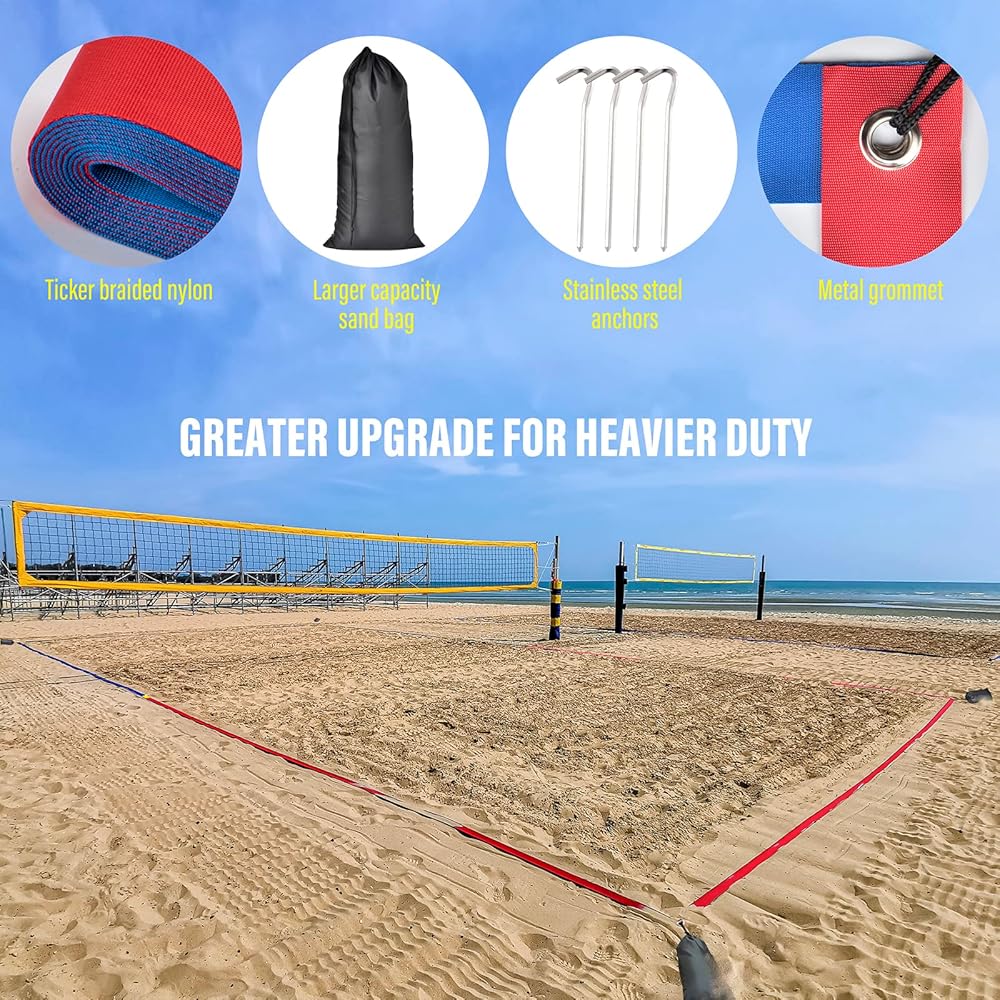 خطوط كرة الطائرة الشاطئية الاحترافية المطورة للرمل 2 بوصة، رؤية أفضل، مقاومة الطقس المحسنة، المراسي غير القابل للصدأ وأكياس الرمل، قياسية 26.3 × 52.6 بوصة