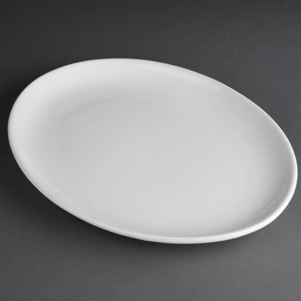 Great value 10x 7 ¾" porcelain oval Coupe plates from Athena Hotel ware which is tough, functional and practical making this crockery range popular, ideal for use in pubs, canteens and bistros.