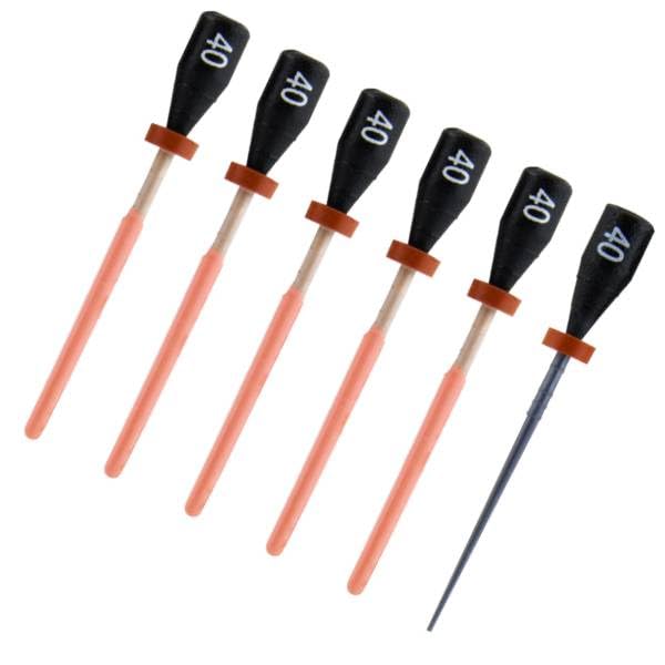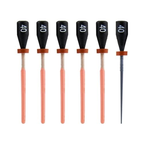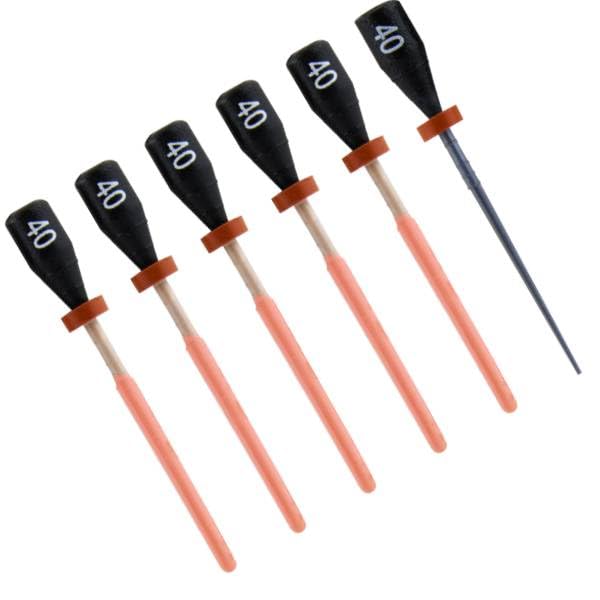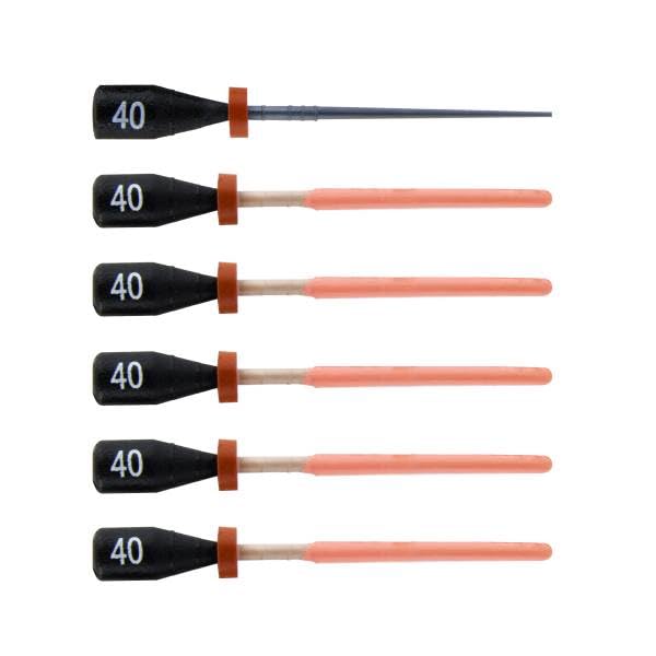 One File G Gutta Percha Carrier Obturators, 5 x #40 (Black) Obturators + 1 verifier. Alpha-phase gutta-percha provides excellent & precise fillings. Obturators are radiopaque. Verifiers make precise sizing easy.
