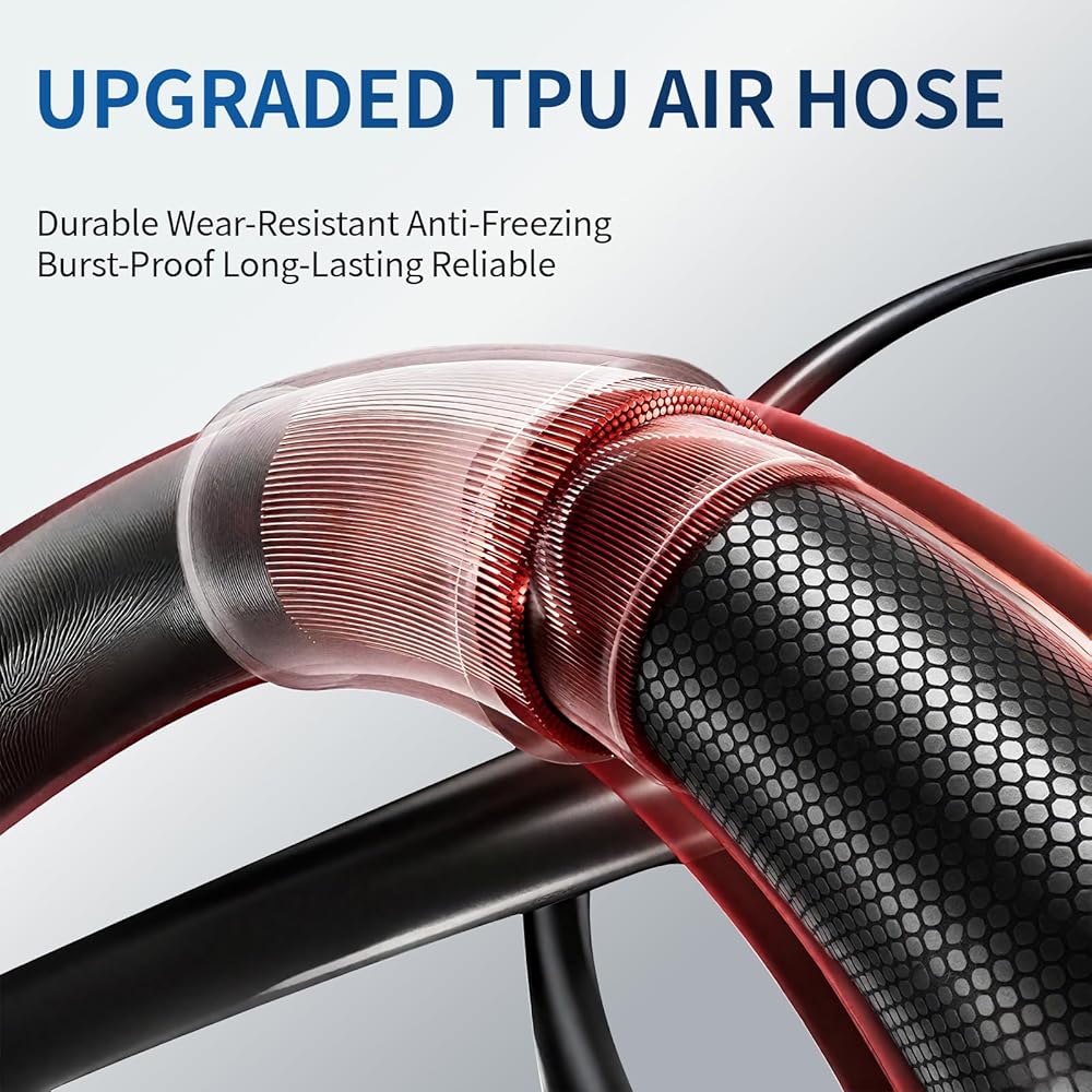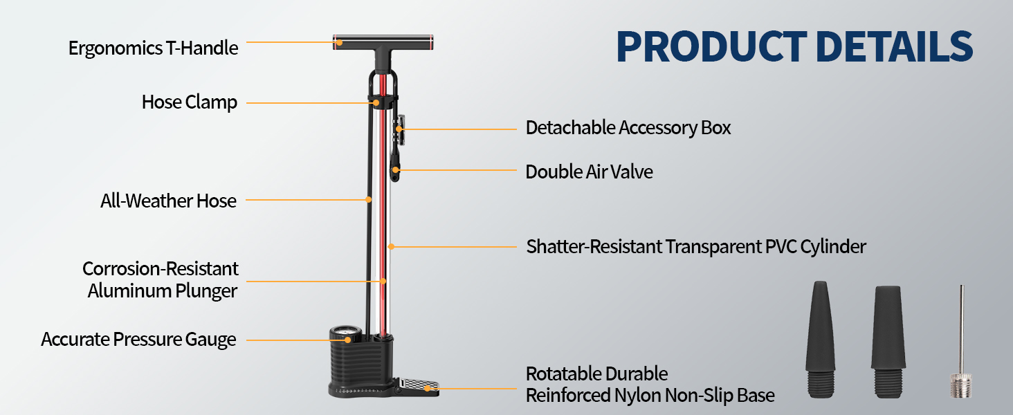 Built to Last: Reinforced & Ergonomic DesignWe engineered this air pump for bike use using premium materials. The robust, foldable base is crafted from reinforced nylon for stability and impact resistance. The upgraded TPU air hose remains flexible even in freezing temperatures or extreme heat. Paired with an ergonomic, non-slip handle, this pump offers a comfortable grip for daily use.