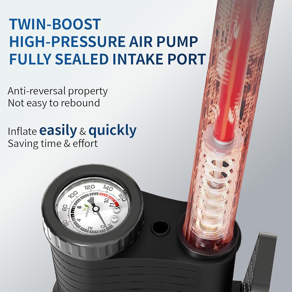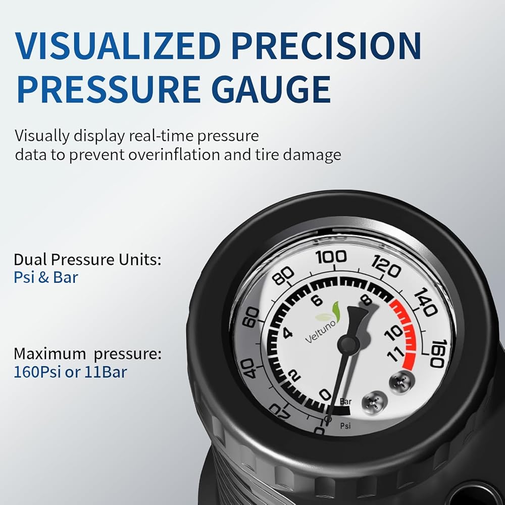 Effortless Inflation Up to 160 PSIWhy struggle with inefficient mini pumps? Our heavy-duty floor pump features an oversized piston that pushes more air per stroke, significantly reducing your pumping time. Capable of reaching 160 PSI (11 Bar) with smooth, consistent output, it allows users of all ages to inflate tires quickly with less effort. It is the ultimate high-pressure bike pump for getting you back on the road faster.