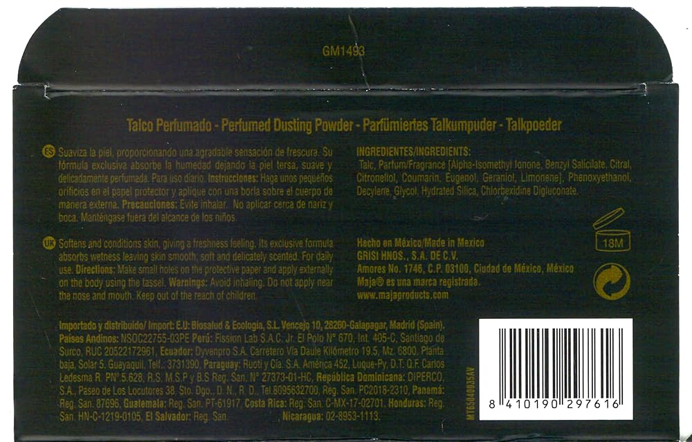 Powder yourself with Maja. An elusive fragrance made of rose, jasmine and other floral essences. It has suggested sophistication in Spain for generations. When you wear it you will feel both refreshed and special. Maja talcum powder smoothes and conditions skin giving a sense of freshness. Our exclusive formula absorbs moisture leaving skin supple, smooth and delicately perfumed. For daily use.