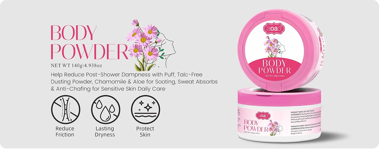 راحة مهدئة للبشرة: تم تصميم مسحوقنا ليكون لطيفًا على البشرة، حيث تم تركيبه من أكسيد الزنك الصديق للبشرة. يساعد على تهدئة البشرة ويتركها تشعر بالراحة، ويحافظ على الشعور بالرفاهية طوال اليوم.