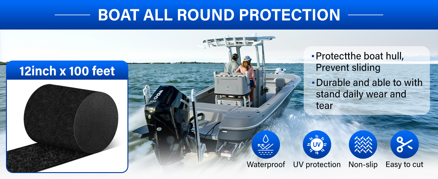 تشمل العبوة: 1 لفة سجادة بطابقين للقارب مقاس 12 بوصة × 100 قدم، يمكن قصها حسب الحجم للالتفاف حول المقطورة؛ يمكنه حماية الجزء السفلي من القارب من الخدش بالسطح، ومناسب للقوارب النفاثة أو ملحقات مقطورة القوارب الأخرى؛ يمكن تطبيقه أيضًا لتغطية الأرصفة الساحلية أو الدواسات المنزلقة أو أسطح السفن أو أثاث الفناء