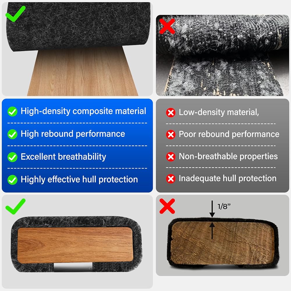 سطح غير كاشط يحمي هياكل القوارب: أكثر سمكًا بنسبة 30% من السجاد ذي العلامات التجارية الأخرى، مع ألياف البوليستر المعززة، تصميم ناعم ومنخفض الوبر يمنع الخدوش على الألياف الزجاجية والألمنيوم والهيكل الخشبي أثناء التحميل والتفريغ والنقل.