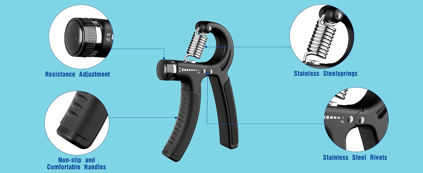 ADJUSTABLE RESISTANCE: According to the needs of exercise, you can adjust the grip force in the range of 5kg-60kg (11-110 Lbs), which is very suitable for men and women who want to exercise grip strength