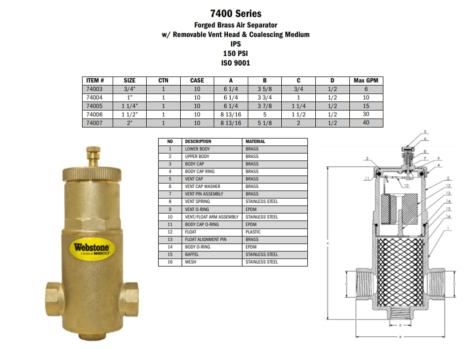 Brass Air Separator with Removable Vent Head & Coalescing Medium. This product is made in China and manufactured by NIBCO