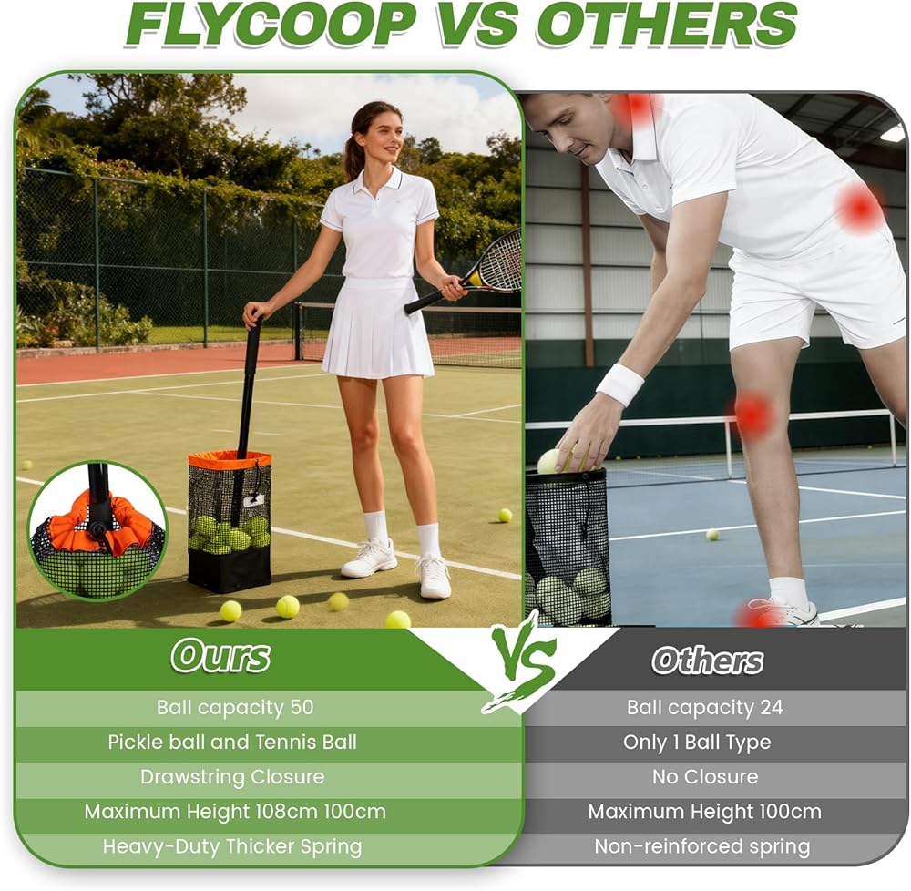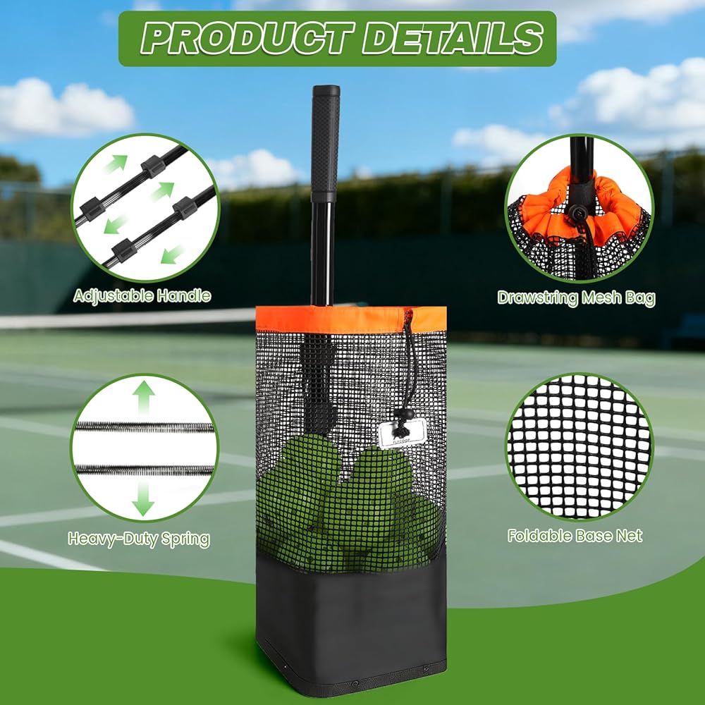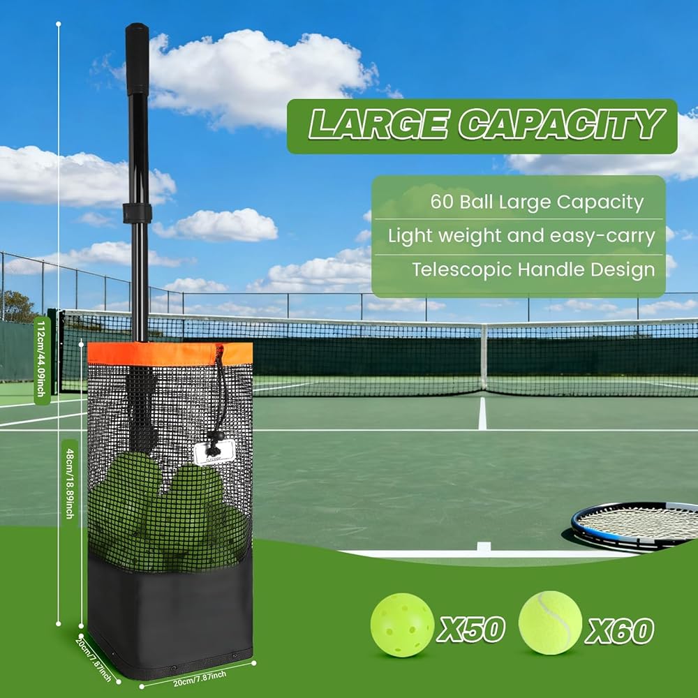 Large Capacity Ball Collector: The upgraded mesh basket holds up to 60 tennis balls or 50 pickleballs, allowing you to collect more balls in fewer trips. Ideal for coaches, athletes, and anyone practicing with multiple balls.