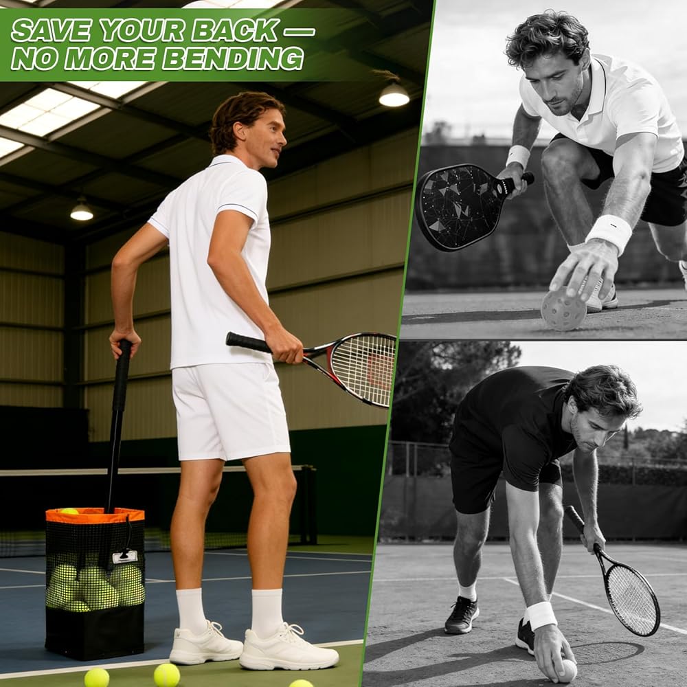 Save Your Back — No More Bending: Pick up tennis balls and pickleballs effortlessly without bending over. Simply press the ball picker upper onto the ball and the spring system collects it instantly into the basket. Perfect for training sessions, coaching drills, and daily court practice.