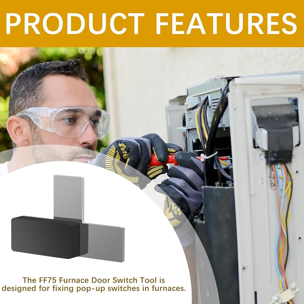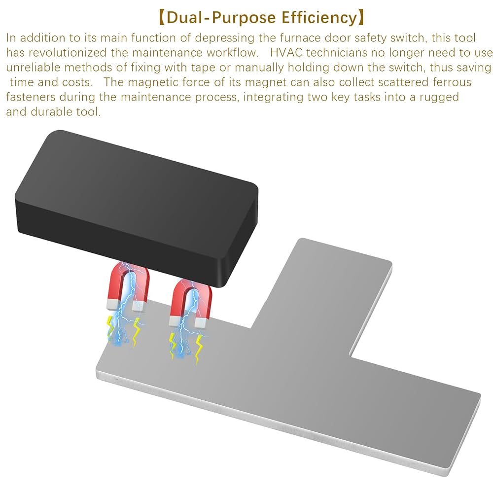 【Essential Accessory】Switch access control tool A Must Have for Hvac business.Designed to hold down the ejector switch while a technician troubleshoots a furnace or air handler.FF75 Furnace Door Switch Tool,In addition to being a depressed furnace door switch inhibitor, it allows HVAC technicians to improve efficiency by using it instead of having to manually hold down the switch. The magnet's attraction also collects and cleans ferrous screws and nails