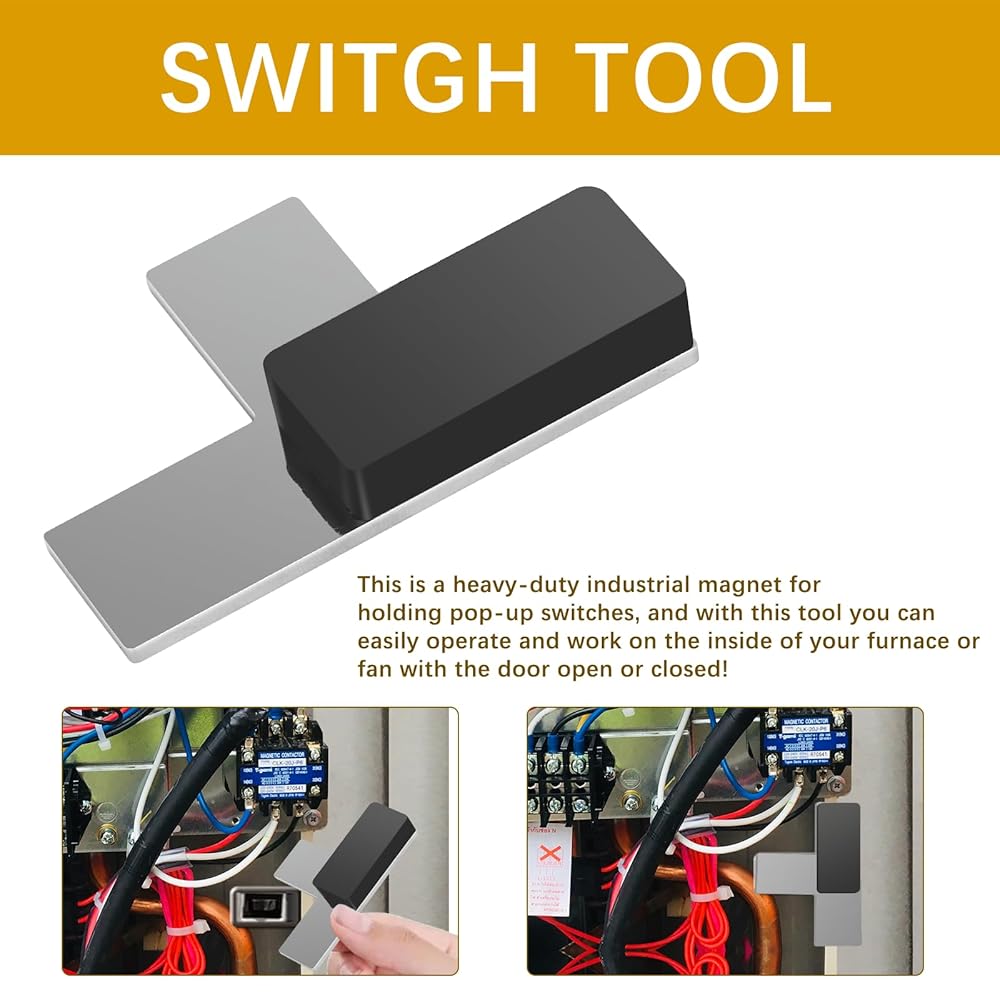 【Versatile Usage】The Magnetic Furnace Door Switch Depressor is a heavy-duty industrial magnet designed to hold down pop-out switches while so the equipment can be worked on with the panel removed troubleshooting furnaces or air handlers. It securely holds down furnace switches magnetically and works on all different kinds of detent switches.