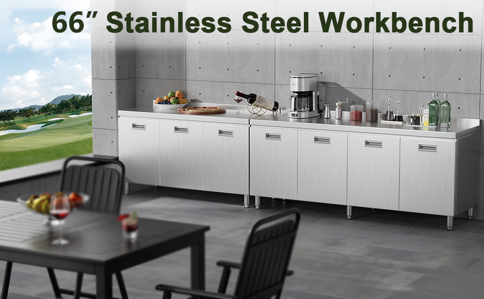 هيكل من الفولاذ المقاوم للصدأ عالي التحمل: مصنوع من الفولاذ المقاوم للصدأ الفاخر، توفر طاولة التحضير هذه متانة استثنائية ومقاومة للصدأ والبقع. مثالي للمطابخ التجارية أو ورش العمل أو المرائب، فهو يضمن الموثوقية على المدى الطويل والمظهر الاحترافي الأنيق. (ملاحظة: التجميع مطلوب.)