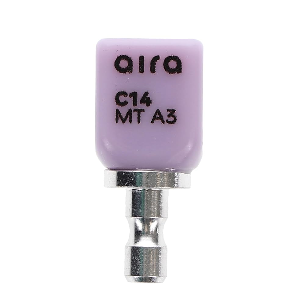 Aira 600142 DuraLux IPS e.max Type CAD /inLab MT A3 C14 5/Pk Equiv Ivoclar 680030. The Aira IPS e.max Type CAD blocks are composed of reliable lithium disilicate glass-ceramic, well-known for providing an exceptional balance between high flexural strength and natural, tooth-like esthetics. This particular block configuration is carefully engineered to achieve the optimal combination of opacity and natural appearance required for full-contour restorations like crowns and veneers.