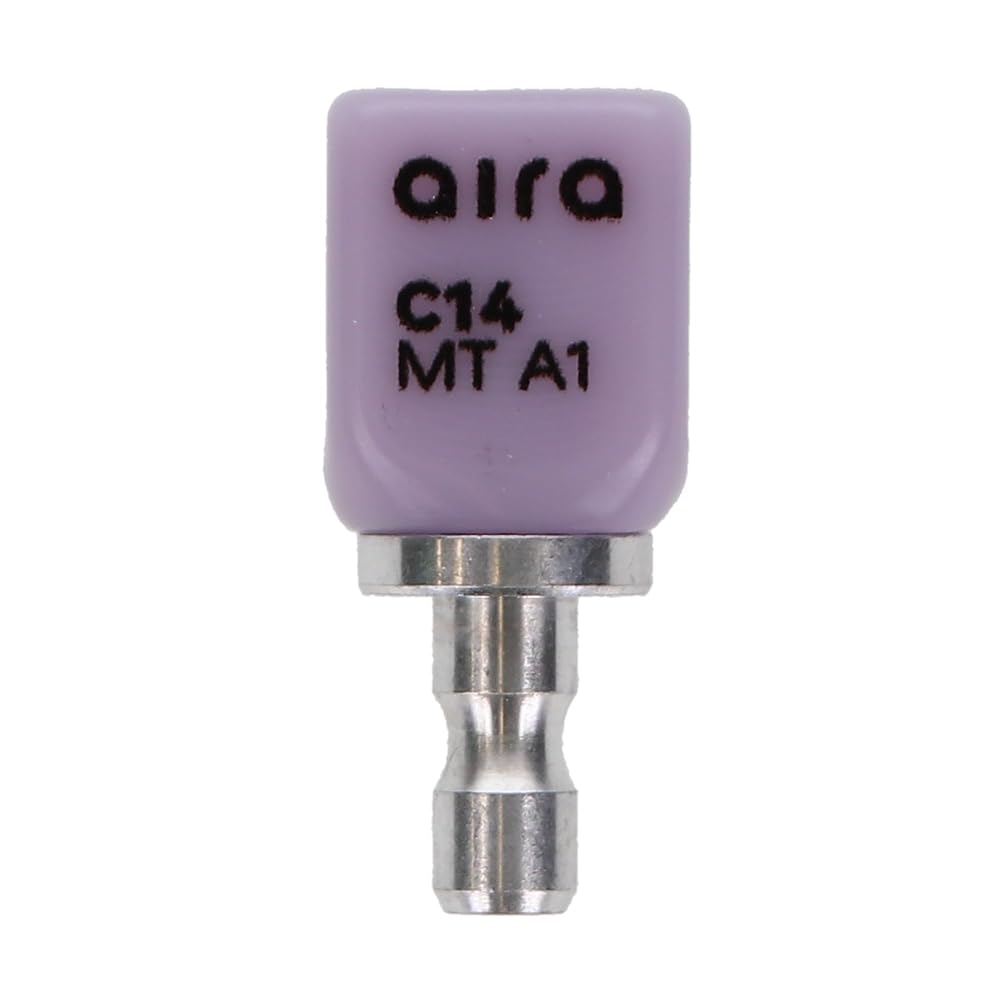 Aira 600140 DuraLux IPS e.max Type CAD /inLab MT A1 C14 5/Pk Equiv Ivoclar 680028. The Aira IPS e.max Type CAD blocks are composed of reliable lithium disilicate glass-ceramic, well-known for providing an exceptional balance between high flexural strength and natural, tooth-like esthetics. This particular block configuration is carefully engineered to achieve the optimal combination of opacity and natural appearance required for full-contour restorations like crowns and veneers.