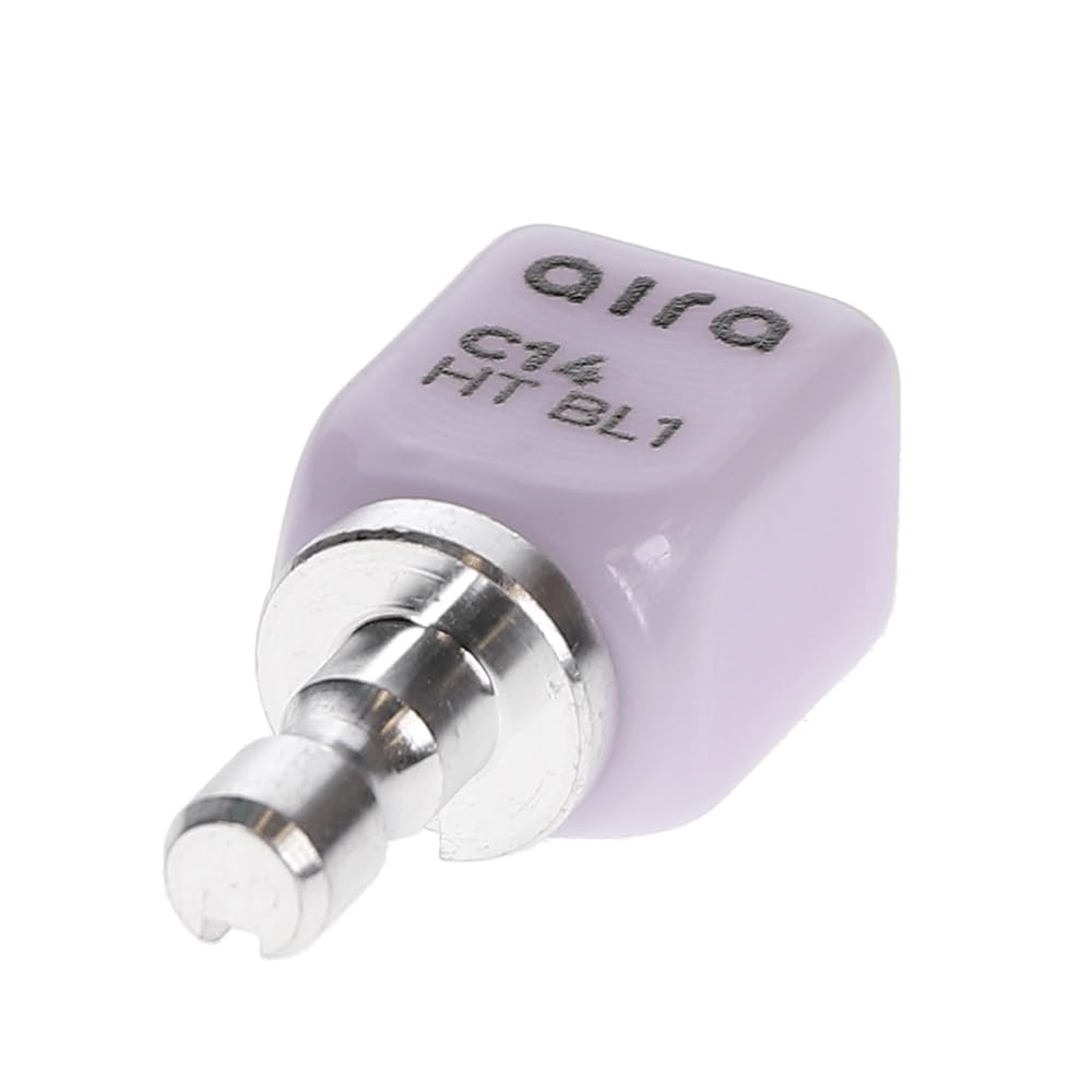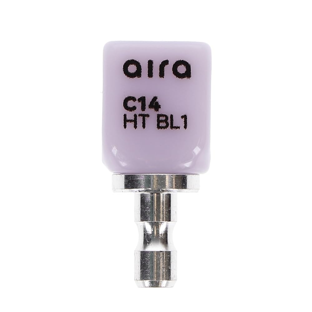 Aira 600136 DuraLux IPS e.max Type CAD /inLab HT BL1 C14 5/Pk Equiv Ivoclar 626427. The Aira IPS e.max Type CAD blocks are composed of reliable lithium disilicate glass-ceramic, well-known for providing an exceptional balance between high flexural strength and natural, tooth-like esthetics. This particular block configuration is carefully engineered to achieve the optimal combination of opacity and natural appearance required for full-contour restorations like crowns and veneers.