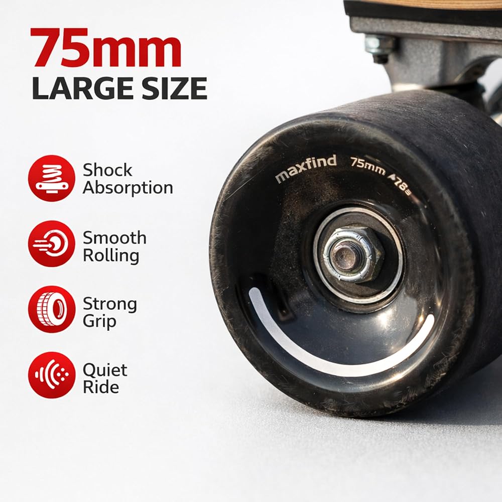 عجلات لوح التزلج maxfind 75 مم 78A - لوح طويل من البولي يوريثين الناعم وعجلات كروزر كهربائية، مجموعة من 4