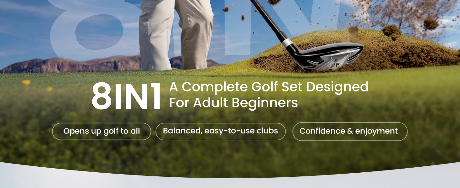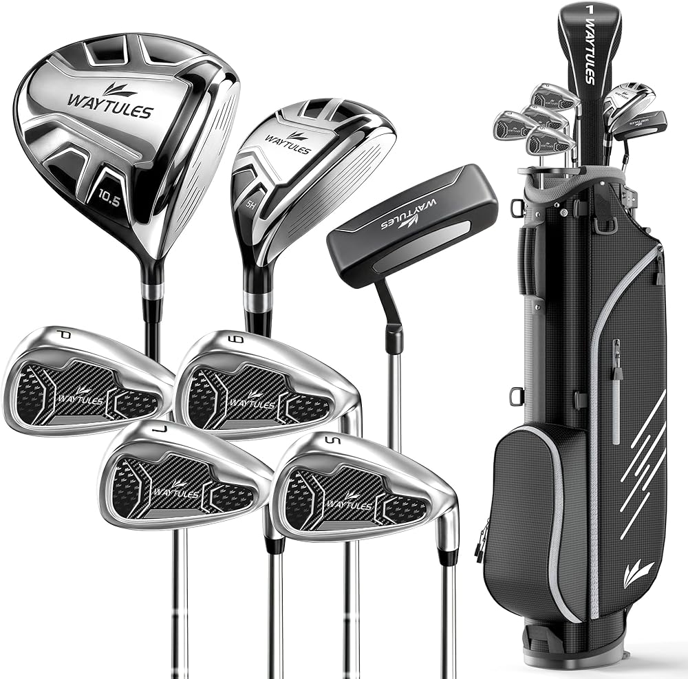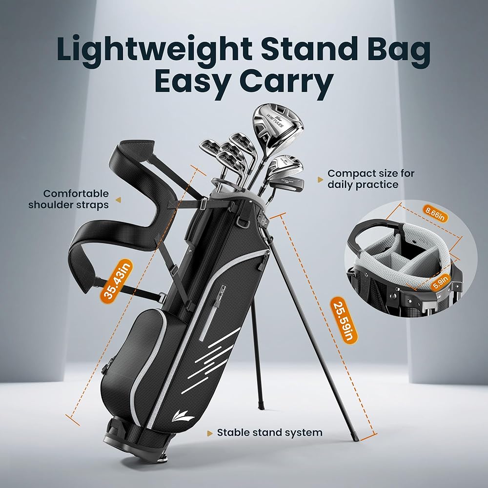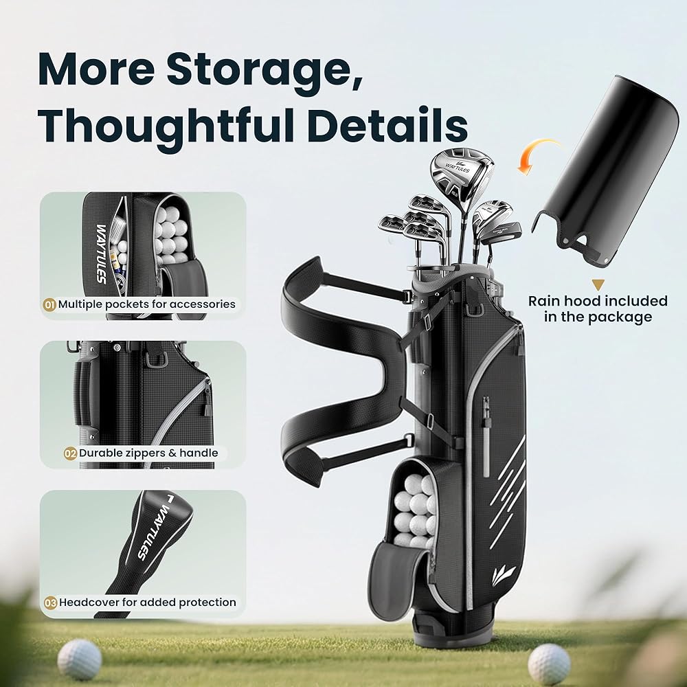 ⛳ مجموعة جولف كاملة مكونة من 7 أندية للمبتدئين، تتضمن هذه المجموعة سائق، 5# هجين، 5/7/9 مكاوي، إسفين رمي، ومضرب، مما يمنح لاعبي الجولف المبتدئين المزيد من خيارات النادي لمسافات ولقطات مختلفة.