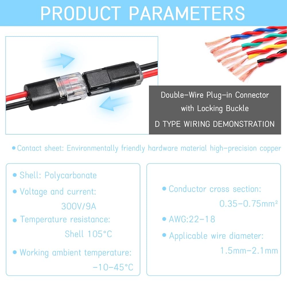 【Wide Applications】 Low voltage connectors are suitable for all household wiring, you can use them for fans, sockets, switches, speakers, lamps, motorcycles, cars, led light strips, etc. led strip connectors 2 pin can improve your work efficiency, save time, and save electrical energy consumption.