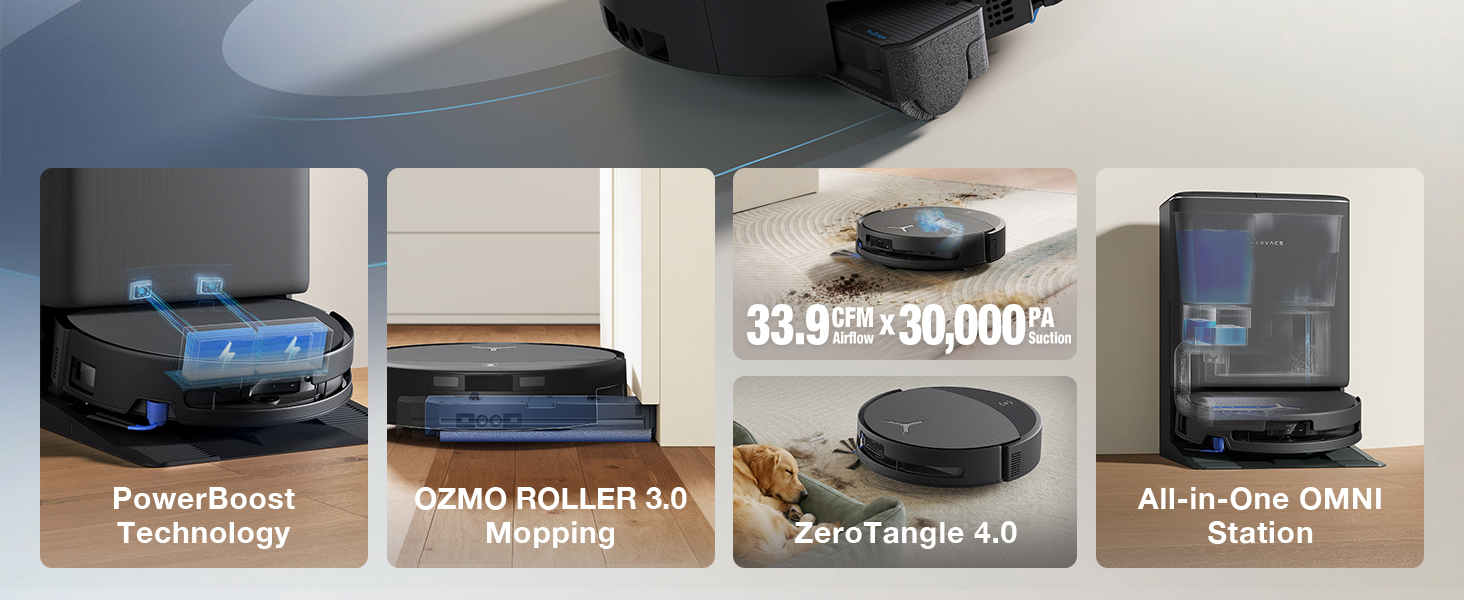 نظام حل التنظيف المزدوج للعناية بالأرضيات بشكل أكثر ذكاءً: تتميز هذه المكنسة الكهربائية والممسحة الروبوتية بحلول تنظيف قياسية منفصلة وشديدة التحمل، وتطابق التركيبات تلقائيًا مع الأوساخ اليومية أو البقع الصعبة - مما يوفر تنظيفًا أعمق للأرضيات الصلبة دون الإفراط في استخدام المنظفات.