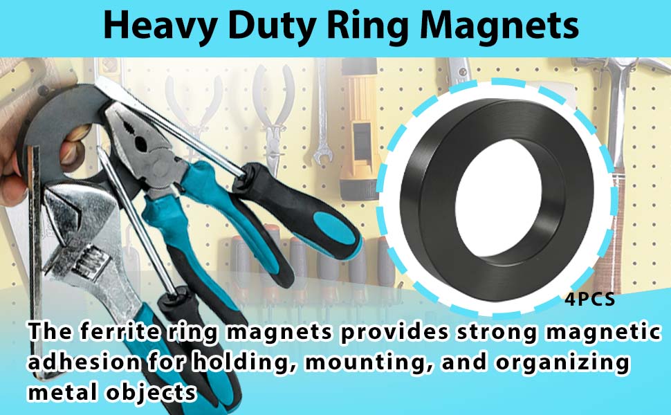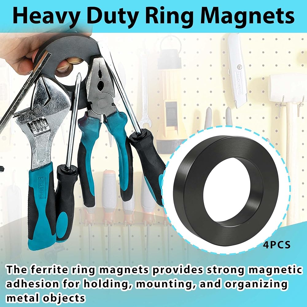 قوة مغناطيسية قوية: تتميز بقوة مغناطيسية من الدرجة 10، توفر هذه المغناطيسات الحلقية من الفريت قوة تثبيت موثوقة للتثبيت الآمن على الأسطح المعدنية
