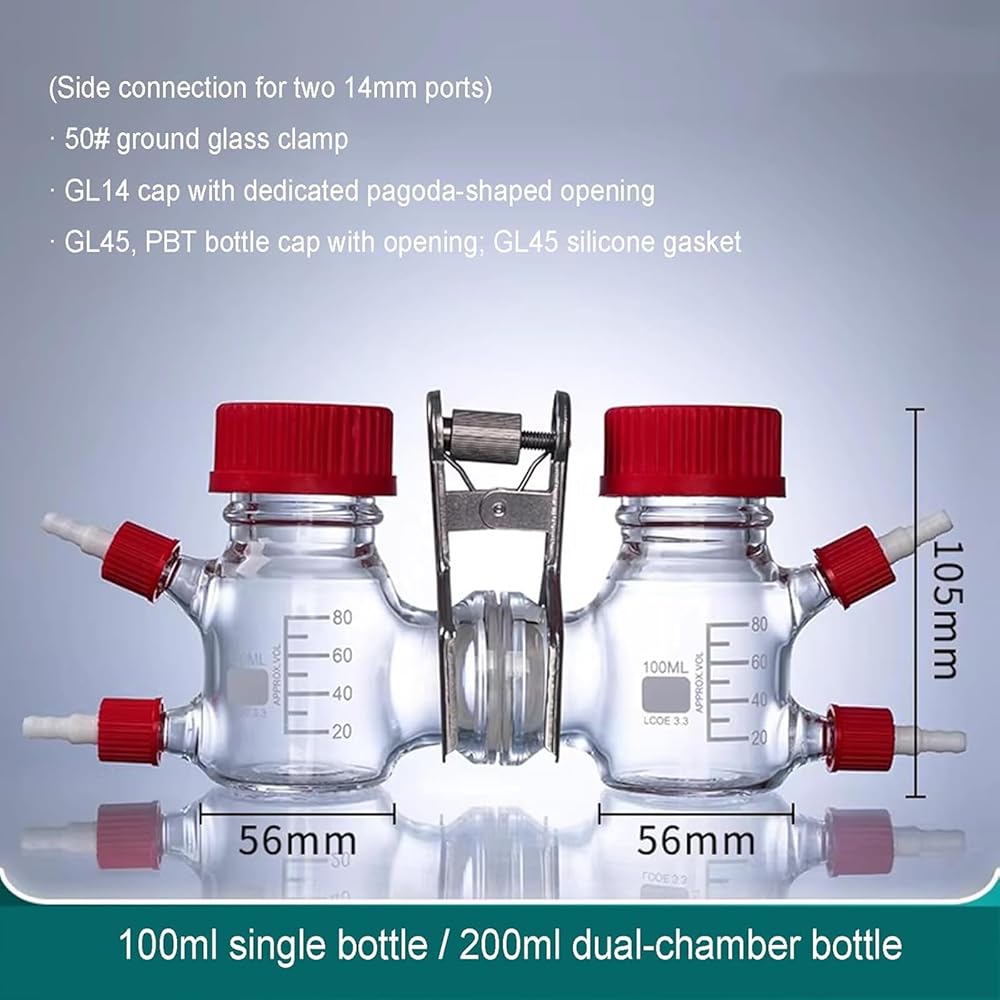 ➤Convenient Sampling Design: Equipped with a durable PBT top cap and PTFE-silicone septa, this H Type Dual Cell Reactor allows easy needle sampling or electrode insertion while maintaining a reliable airtight seal throughout use.